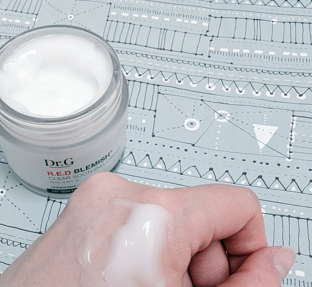 ドクタージー (Dr.G)を代表する商品らしく、韓国では国民的クリームなんだとか。 CICAエキス配合で赤みやニキビのケア、肌荒れのケアに使えます。 潤い成分は100時間持続するそうです。