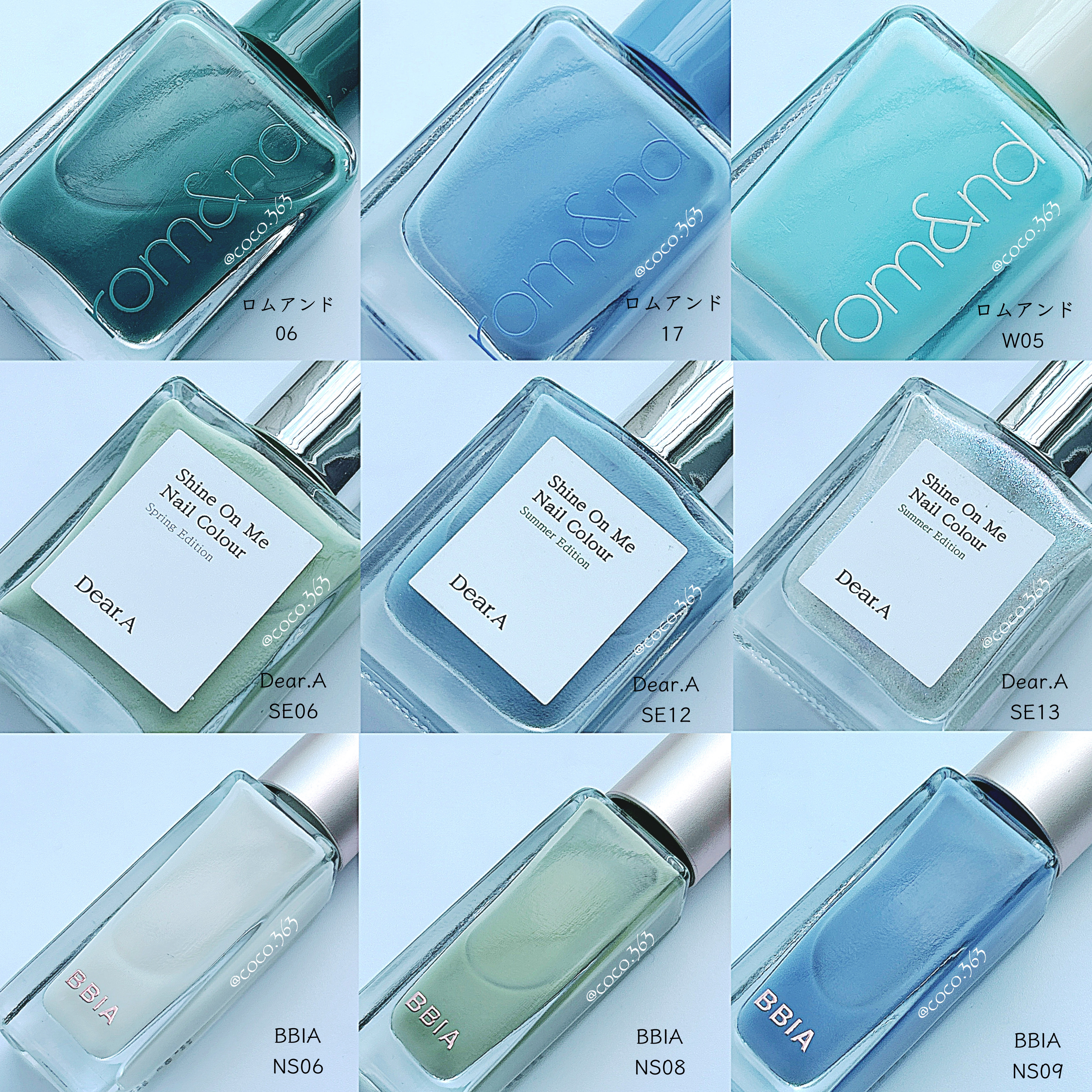 N28 スモーキーアクア N44 シックグレー N52 マーメイドスケール N57 インディゴブルー N82 クラウドレススカイ N85 9PMは以前の限定ですが amazon等のECサイトで 定価で購入できるので 気になる方はぜひ🫶🏻