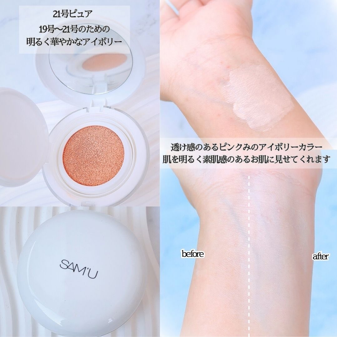 ご覧頂きありがとうございます😊@sam_u_jp@samu_ip_review公式アンバサダーとしての投稿です💕今回ご紹介するのは・・・・・【ピュアアンドピュアクッション21号23号】こんな方にオススメ✨★素肌のようなピュアな肌キメを演出した...