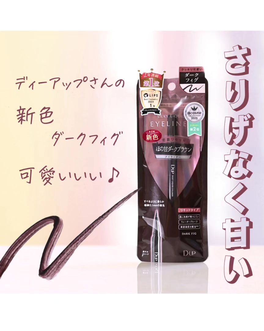 D-UPシルキーリキッドアイライナーWPダークフィグ定番のダークブラウンに温かな甘みをプラスした完熟いちじくブラウンカラー⸝⋆⸝⋆✓しなやかでコシのある極細0.1mmの筆先✓水・汗・皮脂に強いウォータープルーフ✓5種類の美容液成分(保湿成分)...