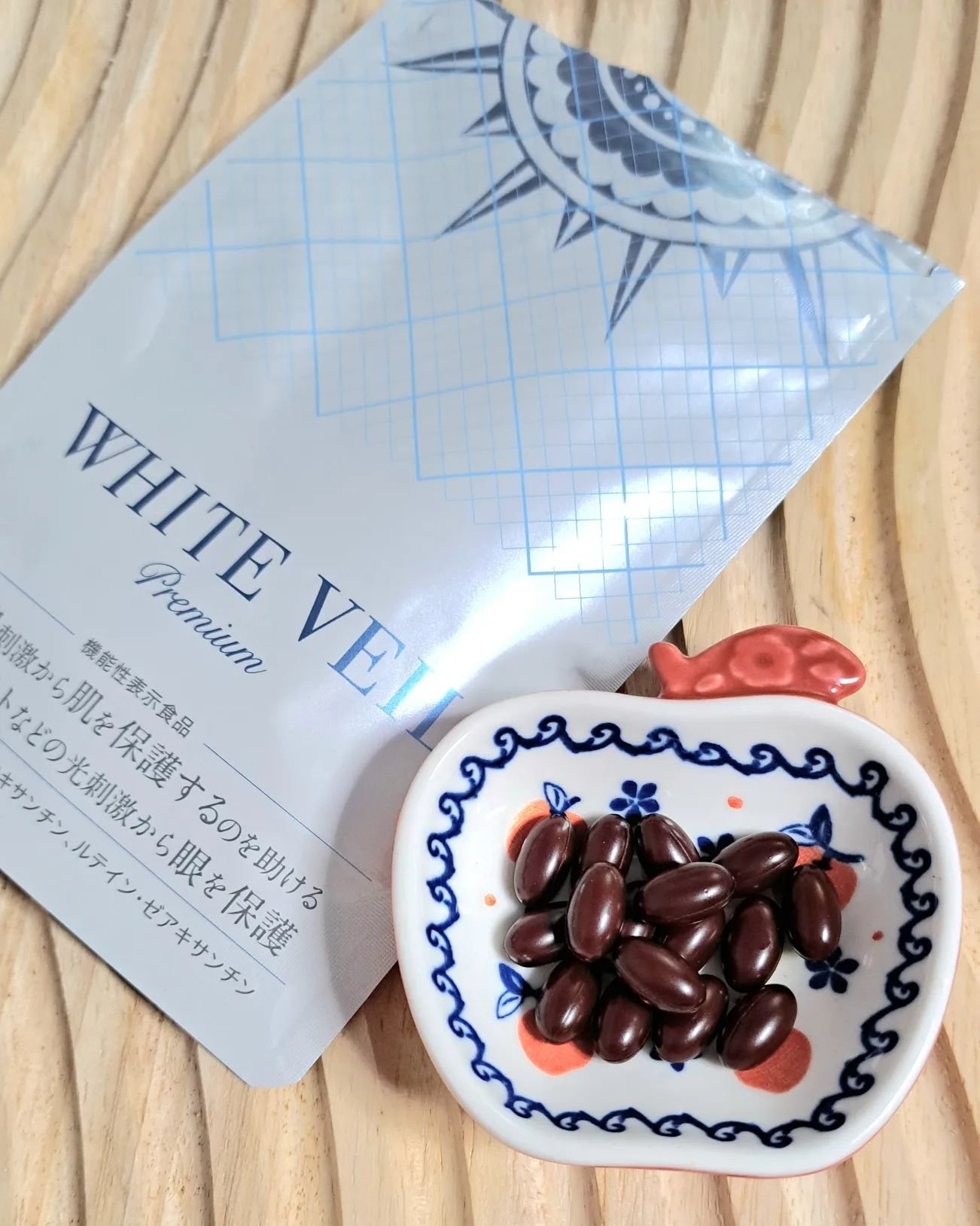 キラ★リズムホワイトヴェールプレミアム今年の夏も3ヶ月飲み続けてた。効果あるかないかわからないけど、なんとなく飲まないと不安になってしまう😅小さめのつるんとした粒。1日一粒飲むだけ。気になる香りもなく飲みやすい形状です。ブルーライトもカットし...