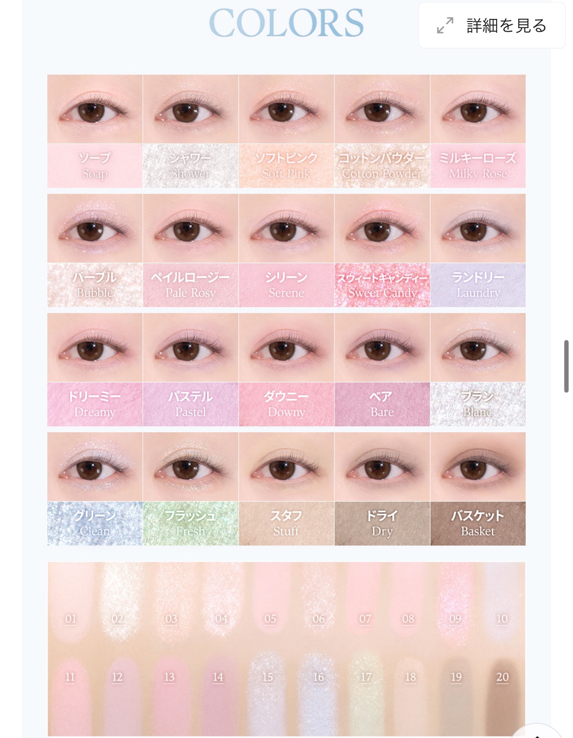 - デイジーク初の20色シャドウパレット。パーソナルカラーに合わせて選べる。 マット、シーマー、グリッターなど様々なテクスチャーが勢揃い その日の気分やファッションに合わせて多様なメイクが可能。 これひとつで様々な色とラメを組み合わせたグラデーションが楽しめます。