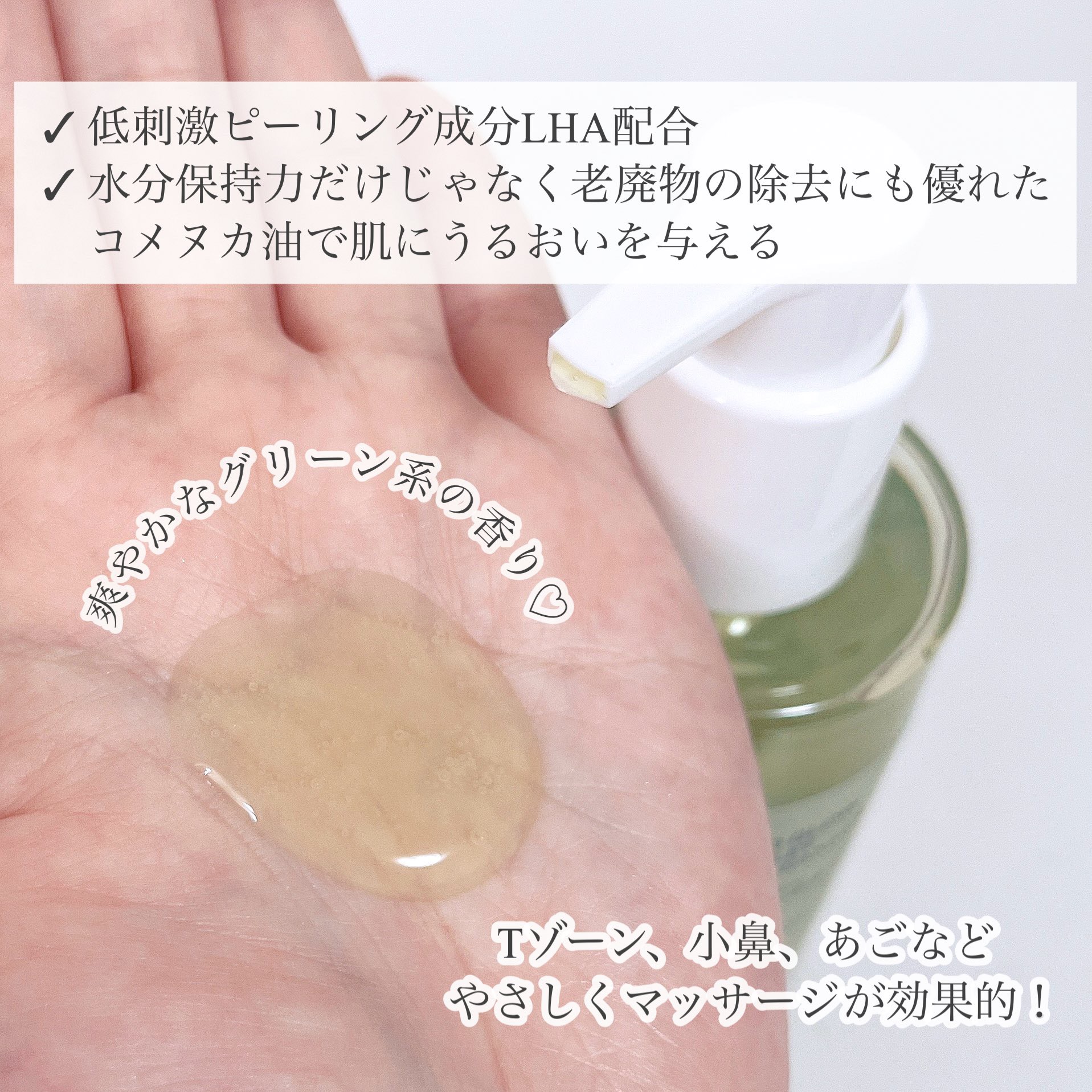 ピーリング成分LHA配合の青麦クレンジングジェルをいただきました✨ 少し緑がかった透明感のあるジェルは、もったりなじみやすいのが特徴です。 洗い上がりはスッキリしつつ、つっぱり感ゼロでしっとり✨ 香りは草っぽいナチュラル系で、リラックスできる心地よさ🌿 メイク汚れもしっかりオフしながら、LHAとβグルカンが角質ケア&水分補給をサポートしてくれる優秀な処方!