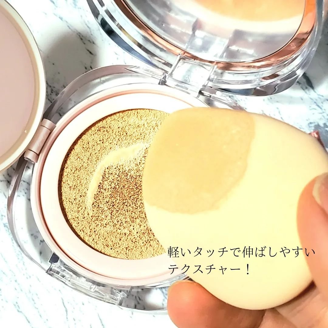 インクのように肌になじみ、シミや不規則な肌トーンを補正インクが染まるように肌のキメの間に入り込み、まだらな肌トーンをコンシーラーレベルのカバー力で、一気に明るくしてリタッチが不要な持続力の強い、クッションファンデーション😀 微細なシリカパウダーと、光を反射するパールパウダーが毛穴とデコボコをカバーしてシリコンゲル成分が毛穴を埋めてツヤ光肌を演出してくれます。 ハイカバー過ぎない所とツヤが合わさってまるで自分の肌のような自然な仕上がりでした🤗