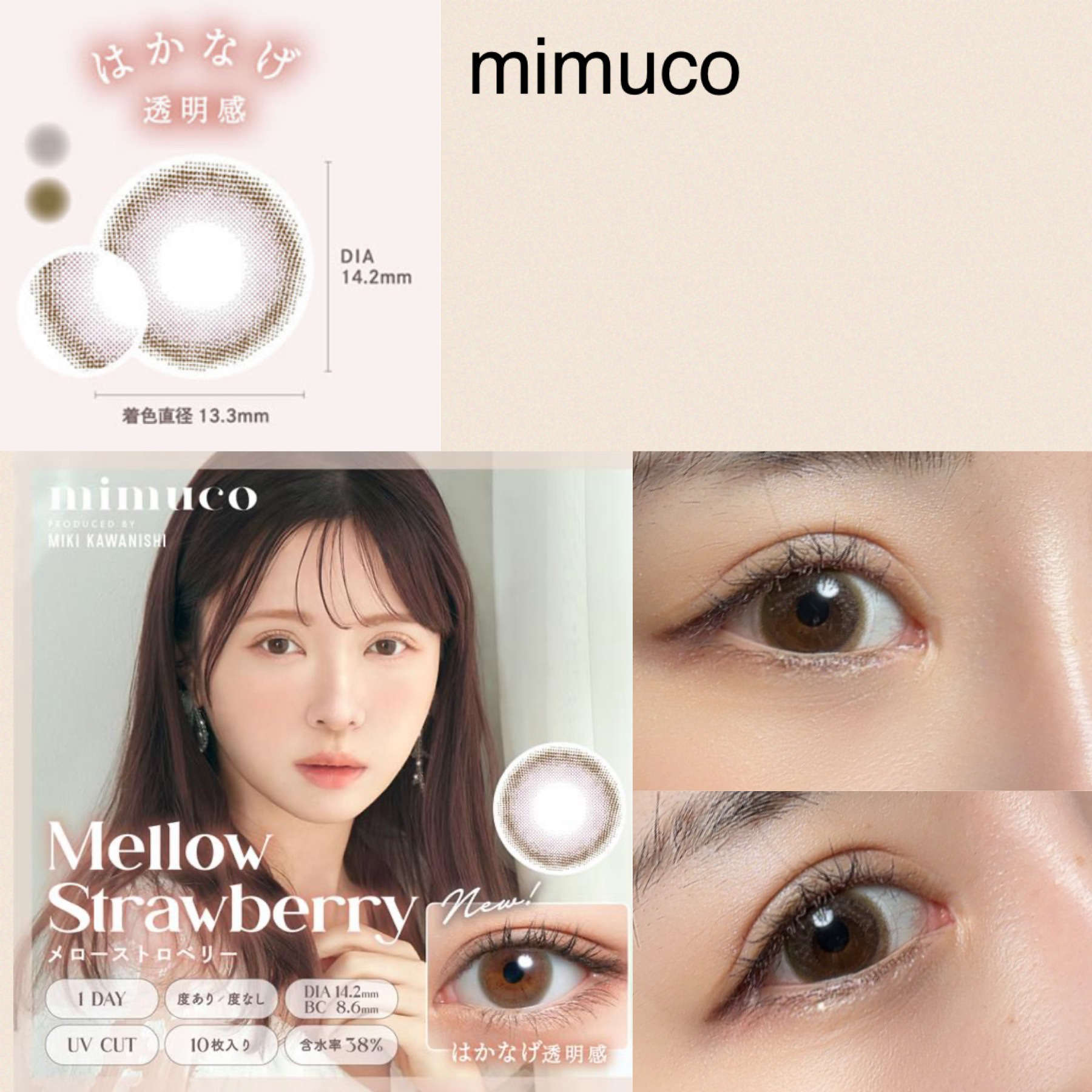 - ※2025年6月以降、商品パッケージ裏面・側面の一部表記を順次変更いたします。尚、これにかかる商品の交換・返品は承っておりません。 裸眼の色が明るい「茶目さん」、暗めな「黒目さん」、どちらの瞳の方が着けても不自然にならずあか抜けるレンズ。 日常使いしやすいブラウンベースのレンズをはじめ、肩ひじ張らずに可愛くなれるナチュラルなレンズとなっております。 ■mimuco ふんわり透明感セット キャラメルスフレ/ブラウンフォンデュ/メープルミルクティー/ポムカヌレ(各2枚入り) ■mimucoちゅるん透明感セット ゼリーグレー/シュガードーナツ/メローストロベリー/ピュレグレージュ(各2枚入り) カラーコンタクトレンズの不適正使用による眼障害の危険性等などがあります。 ●コンタクトレンズは高度管理医療機器です。不十分な洗浄・消毒など不適切なケアや、長時間・交換期間を超えた装用により、アレルギー性結膜炎、角膜感染症、角膜潰瘍等の重篤な眼障害が発生する危険性があります ●ご使用前に取扱説明書を確認してください 使用上の留意事項 ●眼科医院等を受診してからお求めください ●眼に異常を感じたら直ちにレンズ使用を中止し、お近くの眼科等で診察を受けてください ●医師の指示にしたがってご使用ください ●コンタクトレンズを装用する場合、自覚症状がなくても、眼科医院等での定期検査を受けてください ●レンズに不具合がある場合は使用しないでください