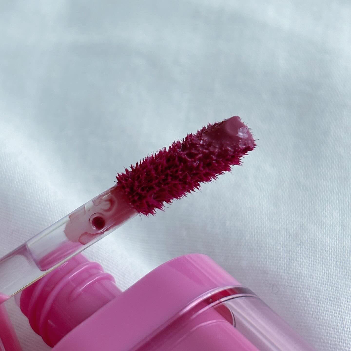 とろみジェルでぽってりツヤ唇。 ぷるんっと弾むように軽い、グロスリップ。 深みのあるミュートプラム。 サッと1度塗りなら透け感のあるシアーな発色に、重ねたらぷっくりツヤ感の高発色。 くぼみのあるチップで、シリコン素材なので衛生面も◎! 唇も荒れずに使えて良かった^ ^