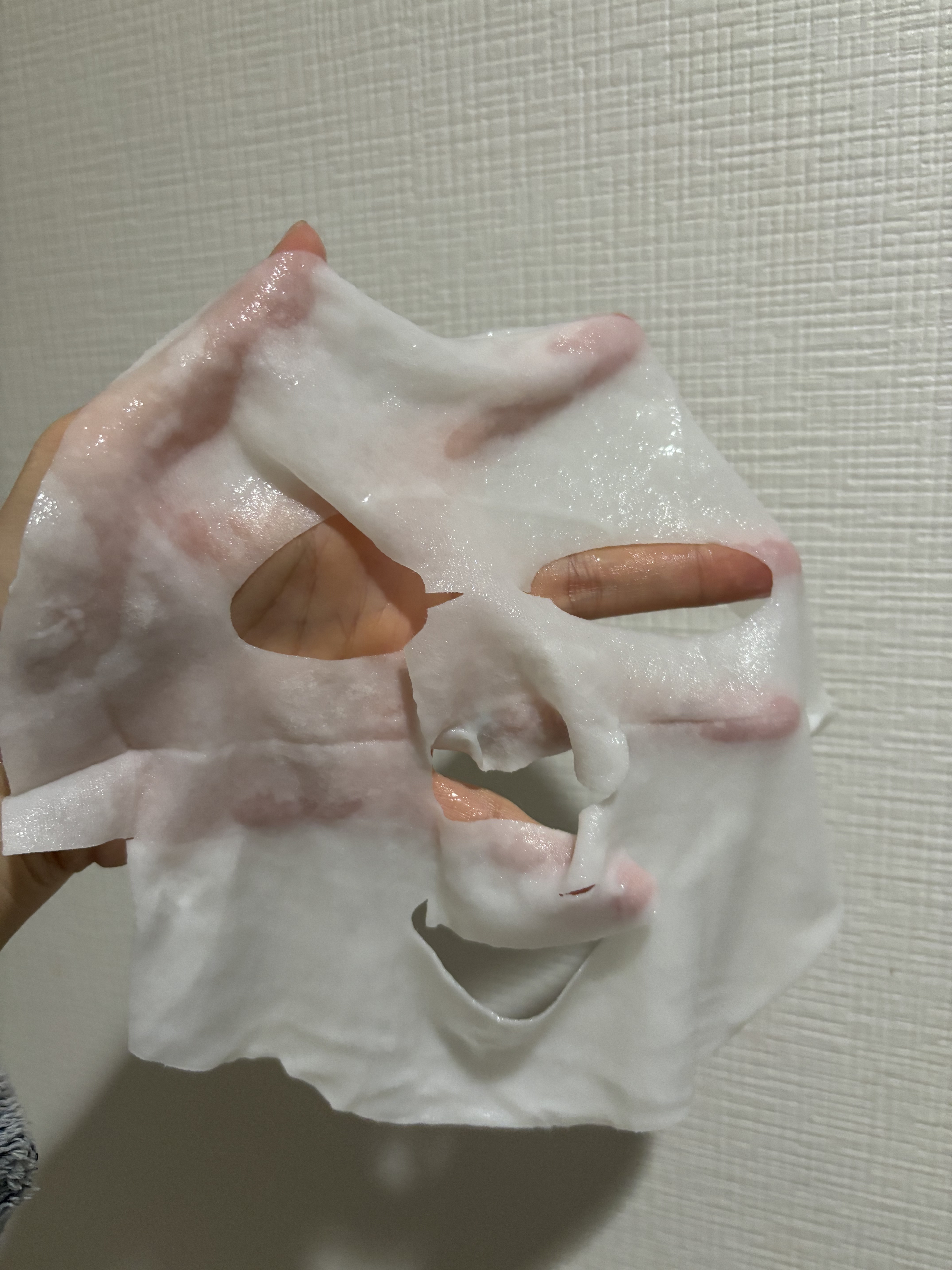 | シワも出来ずにぴたーっと密着。顔との一体感がすごい!そして液がヒタヒタなのに垂れてこない! | 詳細を見る |