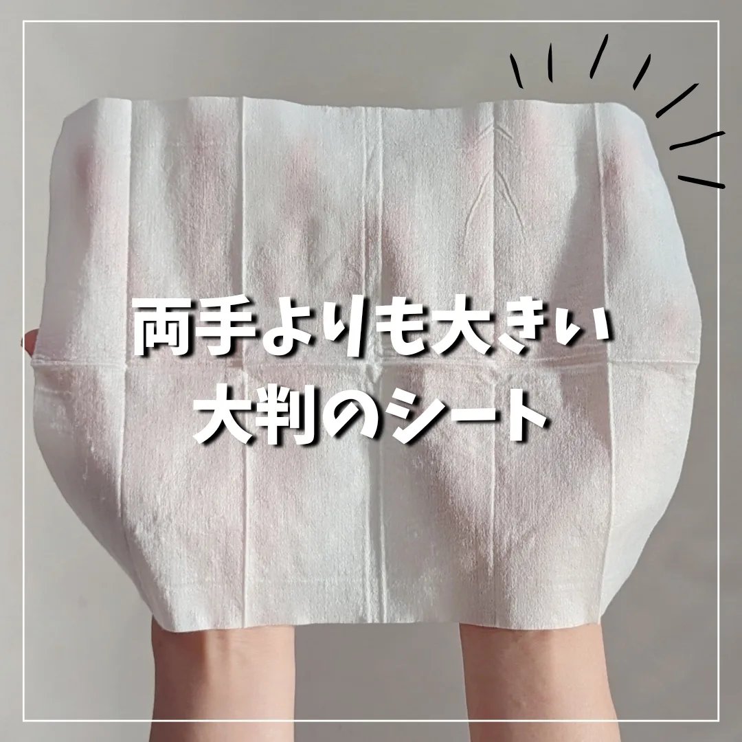 メントール(清涼剤)配合 液がたっぷり染み込んだ両手よりも大きい大判シートだし、厚手でしっかりした作りだから、1枚で全身拭けちゃうよ メントール配合だから、拭いたあとすーっと清涼感があってとっても気持ち良い 我が家は主人が外での仕事だから使用してるんだけど、さっぱりした使い心地だし、ひんやり冷たくてすごく良いって言ってたよ