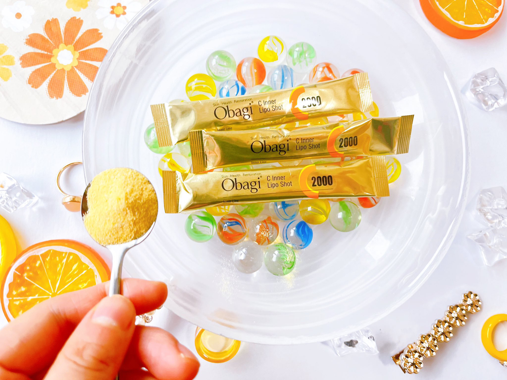 - オバジが提案する飲む“ビタミンC”。オリジナルのリポショットC*を配合し、すばやく届けることを目指し開発した顆粒タイプ。内側からハリとうるおいのある毎日を応援し、透き通るような美しさをサポートします。 <オバジ独自の研究により内側にアプローチ> 1. オバジ独自のリポショットC*。ビタミンCを1日(目安量)当たり2000mg配合。 2. 美容サポート成分のコラーゲンペプチド、コラプラス®に加え、ツボクサエキス、ヒハツエキス配合。 3. 毎日続けていただくために、水なしでもお召し上がりいただけるよう味やくちどけにこだわりました。 ・グレープフルーツ風味 ・顆粒タイプ ・ノンカフェイン *ビタミンC、ヒマワリレシチン、ウコンエキス、加工デンプン、加工油脂
