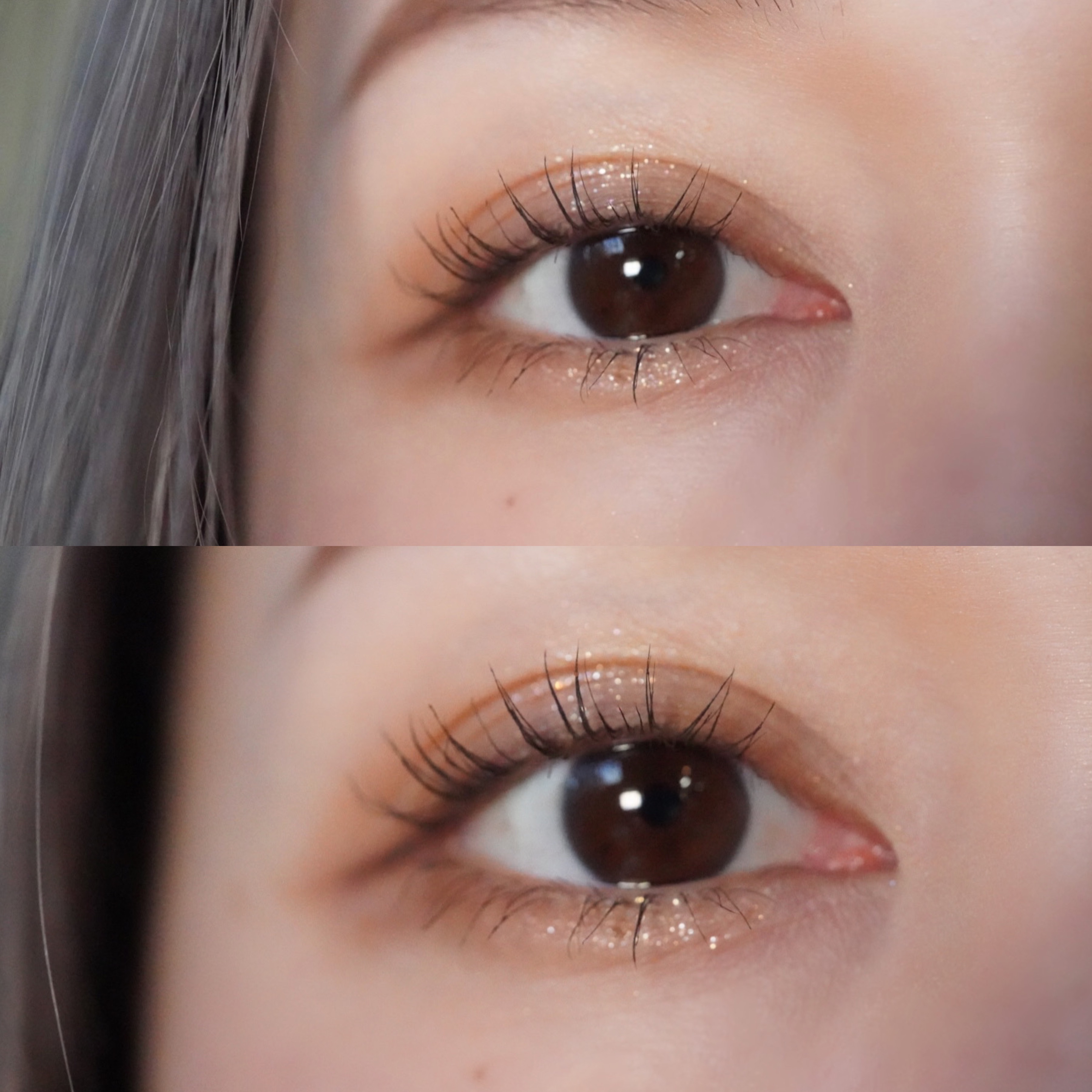 よくパレットのなかで明るいカラーをベースにまぶたに広く塗ることが多いのですが、パール感のあるカラーを避ける🙆♀️! パール感たっぷりの明るいカラーは涙袋に使うぐらい光を集めてぷっくり見せてくれるので、まぶたに広く使うと腫れぼったく見えがち😓 目元を明るくみせてくれたり、次に使うアイシャドウをぼかしやすくしてくれるけど、すっ飛ばしてメインのカラーを塗っちゃう✊🏻❤️🔥 涙袋にはたっぷり塗ってぷっくり見せる🙆♀️💕 シルキースフレアイズのマットタイプはすごく優れているな〜と感じました☺️💗 赤やオレンジなどは、入れすぎると腫れぼったく見えやすいので、見せたいカラーは下まぶた目尻にのせて色をたのしむ♡♡ パール感なしの透けマットだけじゃ物足りない… そう感じさせない華やかなラメが左上に入っているので黒目上と涙袋にのせるとすごく可愛い仕上がりに😍! 厄介な左右差のお陰でマットアイシャドウが好きになりました😌💕