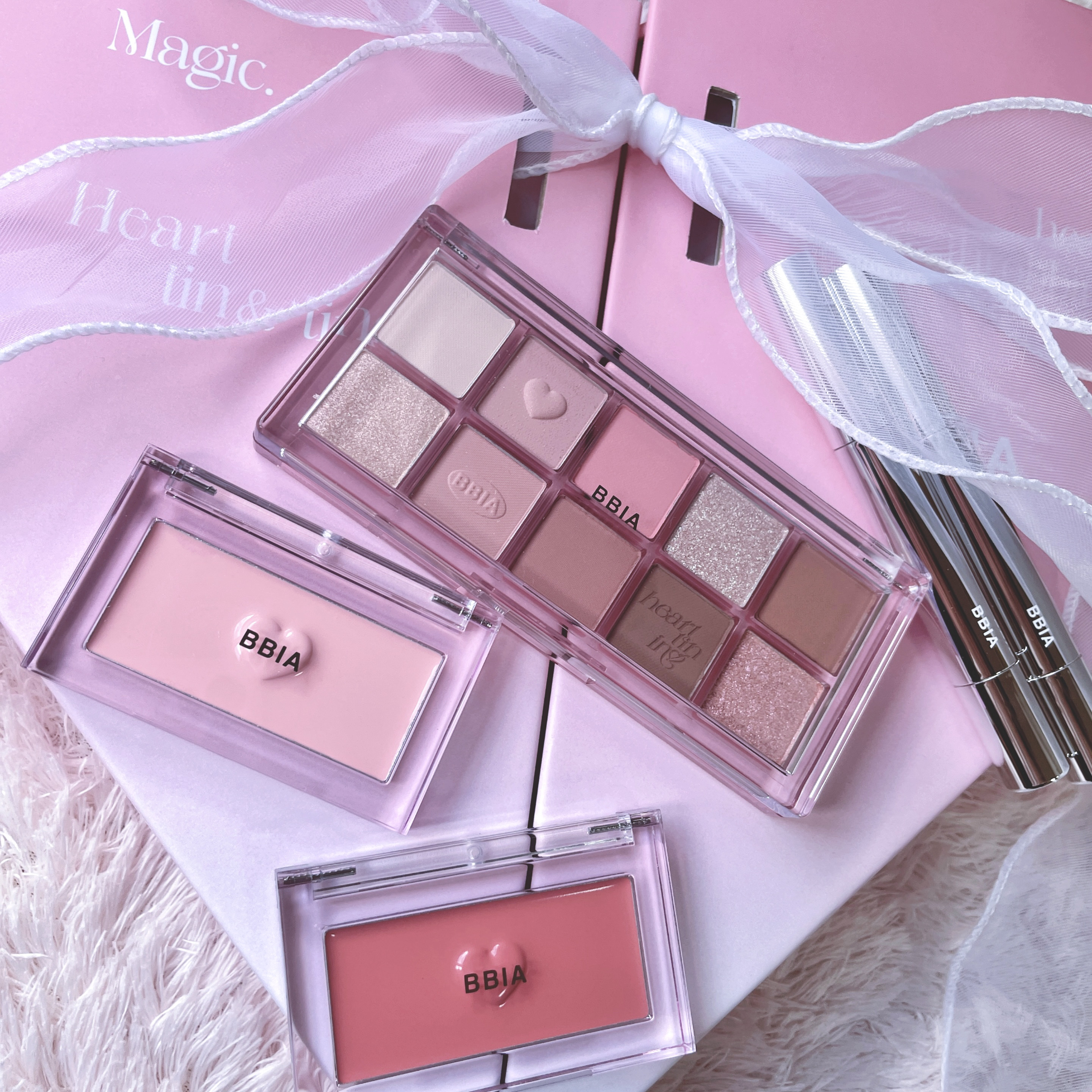 愛らしいロマンチックな目元に仕上がります🥰 マット6色、マットパール1色、グリッター3色で構成されていて、どの色を組み合わせても綺麗に完成します🫶🏻 ハートの型押しも可愛すぎる💘