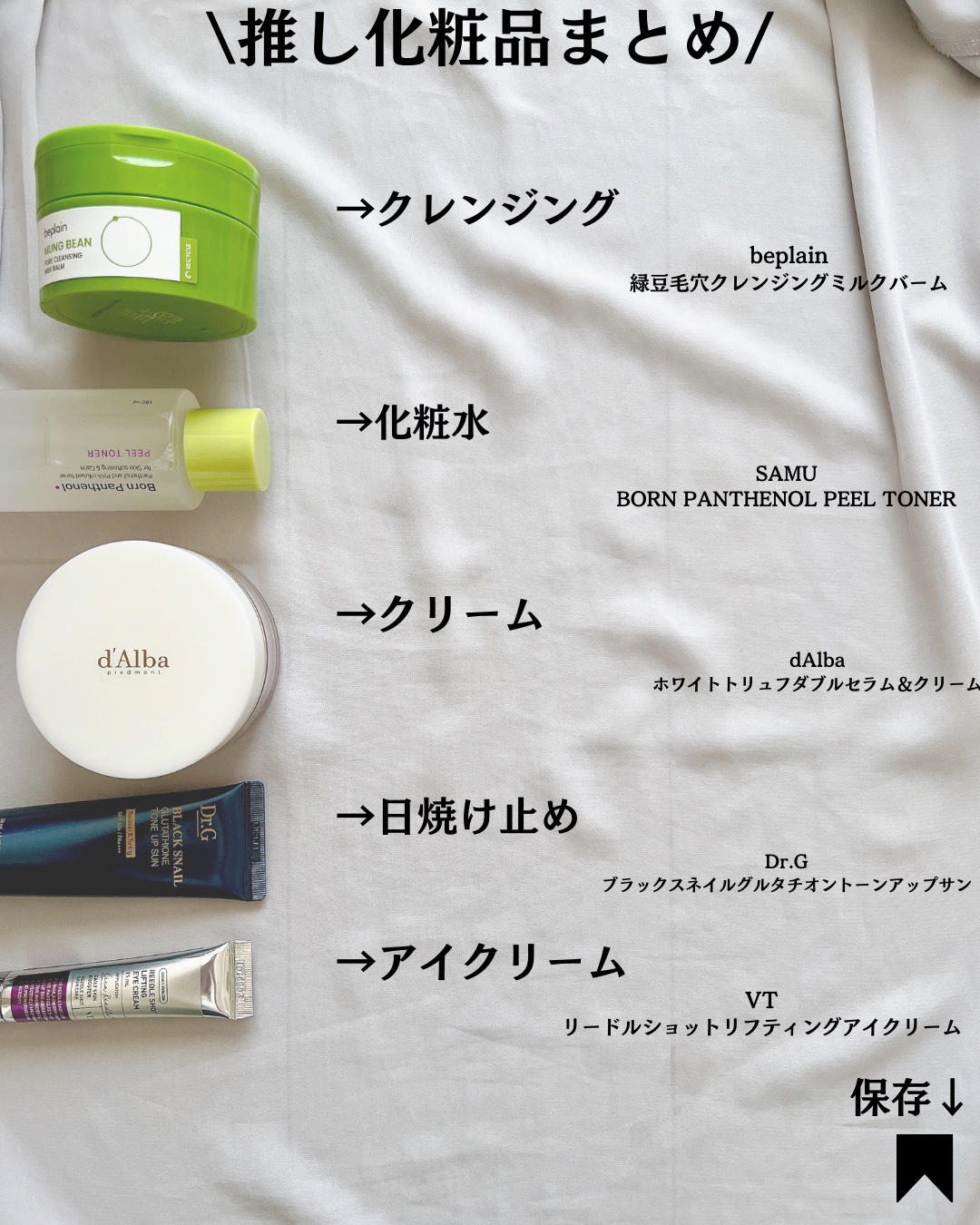 特にほぼ毎日使ってるのはトリデンのダイブインセラム、あと水分感よりも皮脂や毛穴が気になる時はCOSRXのナイアシンアミドとInnisfreeのレチノールシカの組み合わせを使う事が多いかな?🥹🫶 ただこの中にエイジングケア系があまり無いのは、私がなぜかエイジングケア系を使うと口周りとかがピリピリしてしまって荒れてしまうので、選んでないよ😭
