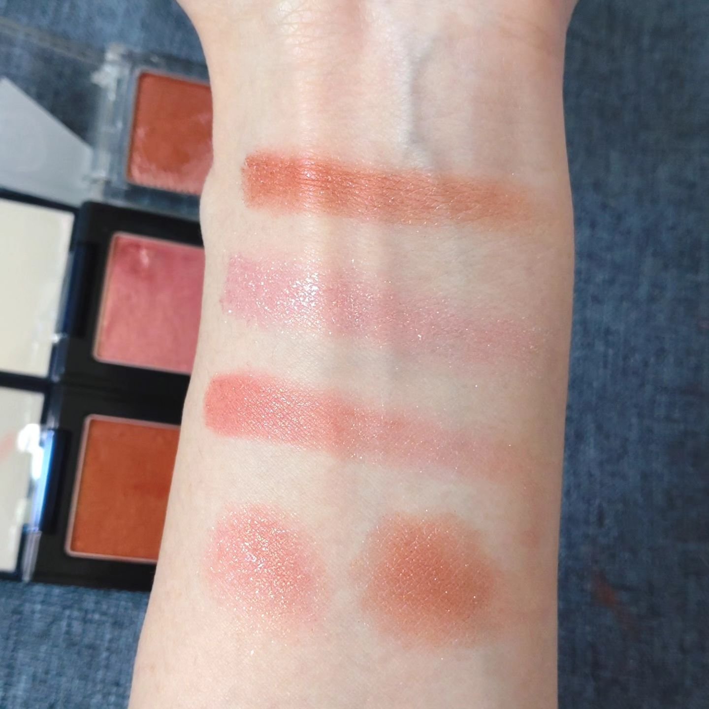 粉質が柔らかできめ細かくマルチなブラウンが使いやすい ほどよいラメ感がデイリーメイクにぴったり 07 サイレントベージュ 王道ブラウンはこちら 赤みや黄みがほんのり入っていて失敗しにくい組み合わせ 08 サンライズオレンジ 明るめだけどブラシでフワッと乗せると肌になじむカラー 左上は見た目ほど黄色が発色しないのでゴールドラメとして使えます