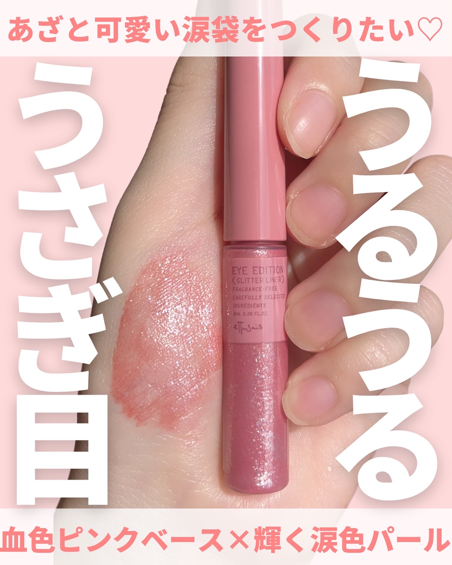 ettusaisエテュセアイエディショングリッターライナーうさぎピンク血色ピンク×繊細パールの透明感まるで泣いているようなうるっとした瞳をつくる涙袋グリッター血色ピンクのベース×繊細に輝く涙色パールがうるっとした血色感のある目元に見せてくれま...