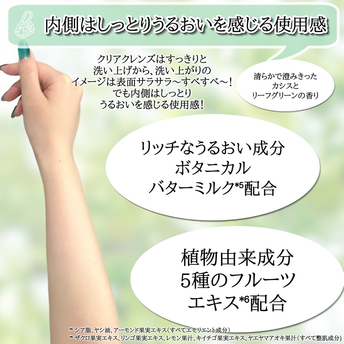 - 【新ボディーソープ誕生】 従来品の良さはそのままに、保湿性や洗い上がりの肌の状態をより感じてもらえる様、アップデート。 くすみなど美容観点での汚れを落とし、5種のフルーツエキス*1配合で透明感*2 のあるすべすべの肌へ。 *1 ザクロ果実エキス、リンゴ果実エキス、レモン果汁、キイチゴ果実エキス、ヤエヤマアオキ果汁(すべて整肌成分) *2 汚れが落ちキメの整った肌印象のこと