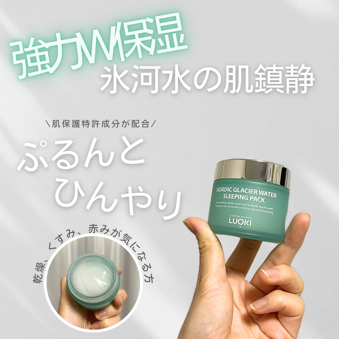 アイスランドのウェルプス氷河水で作られたスリーピングパック&水分クリーム。ヒアルロン酸*とセラミド*のダブル保湿で乾燥知らずのもっちり肌に😳 わらび餅みたいな弾力のあるテクスチャーで濃厚な水分クリームっぽい。素早くなじみ、ベタつかずにサラッと軽い使用感なのにぷりっぷりでびっくり…🥰 ベルガモット天然オイルの香り付きなのでアロマタイムを楽しんでみてね✨