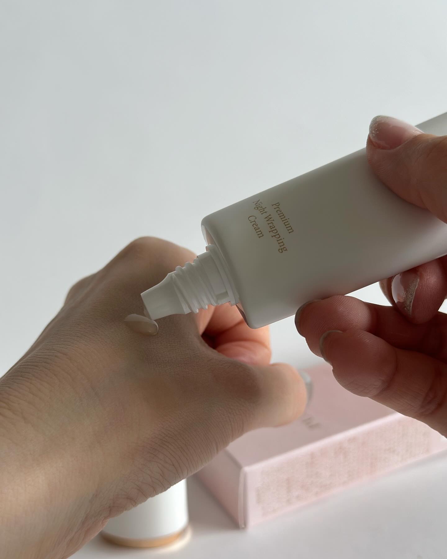 ジェル状のクリームが10分程でラップみたいに変化して密着し、潤いを閉じ込めます。 ラップみたいに密着するけど、空気は通るので 寝ている間の肌呼吸は問題ない、 とってもすごい新感覚なパックです。 年齢肌に必要なナイアシンアミド、レチノール誘導体、ビタミンC誘導体など欲しい成分が 盛りだくさんに入っているのに無添加処方。