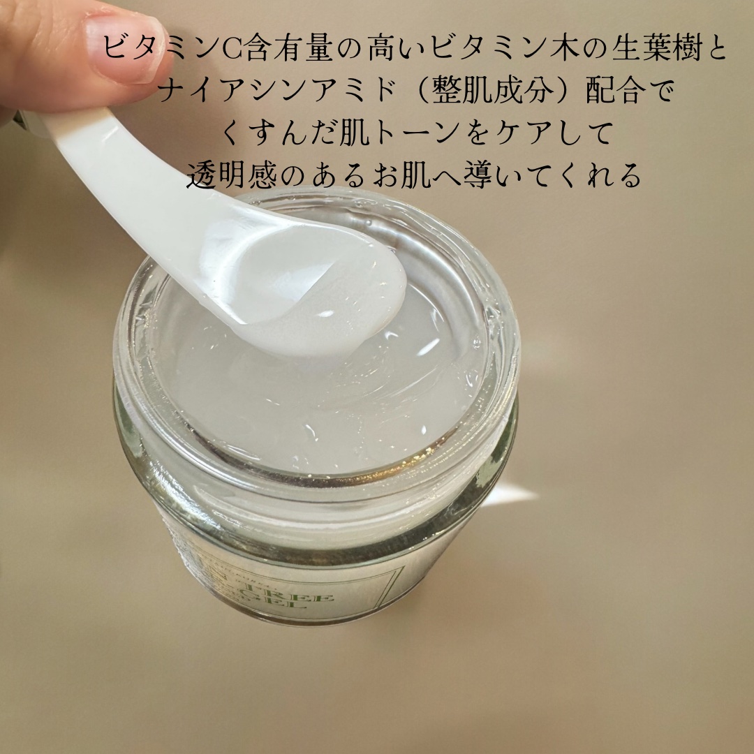栄養たっぷりビタミンツリー生葉水配合の超さわやかな水分ジェル💧 パンテノール、ナイアシンアミドも配合しています🙆♀️ 伸びがいい柔らかいジェルでベタつきなく水分感があります!