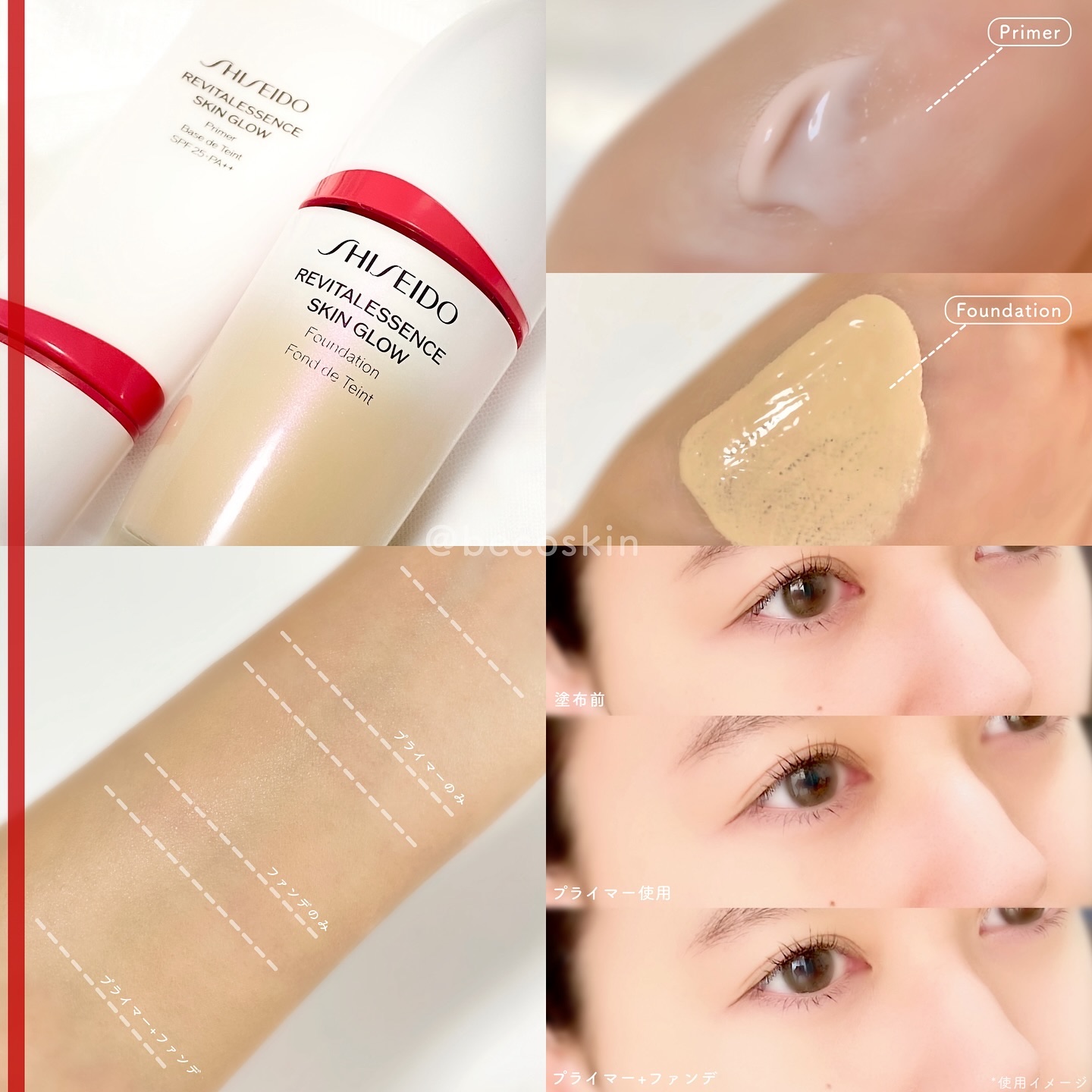 美容液でファンデーションを包むという 資生堂独自の「セラムファースト技術」搭載。 ただ不思議と肌が綺麗に見えるのは、 うるおいたっぷりのツヤ感で乾燥小じわやアラが パッと飛んでくれるからなのかな🥹!? 特にこのふたつの合わせ使いで ツヤもファンデの密着力と持続力も 格上げされる感覚😍