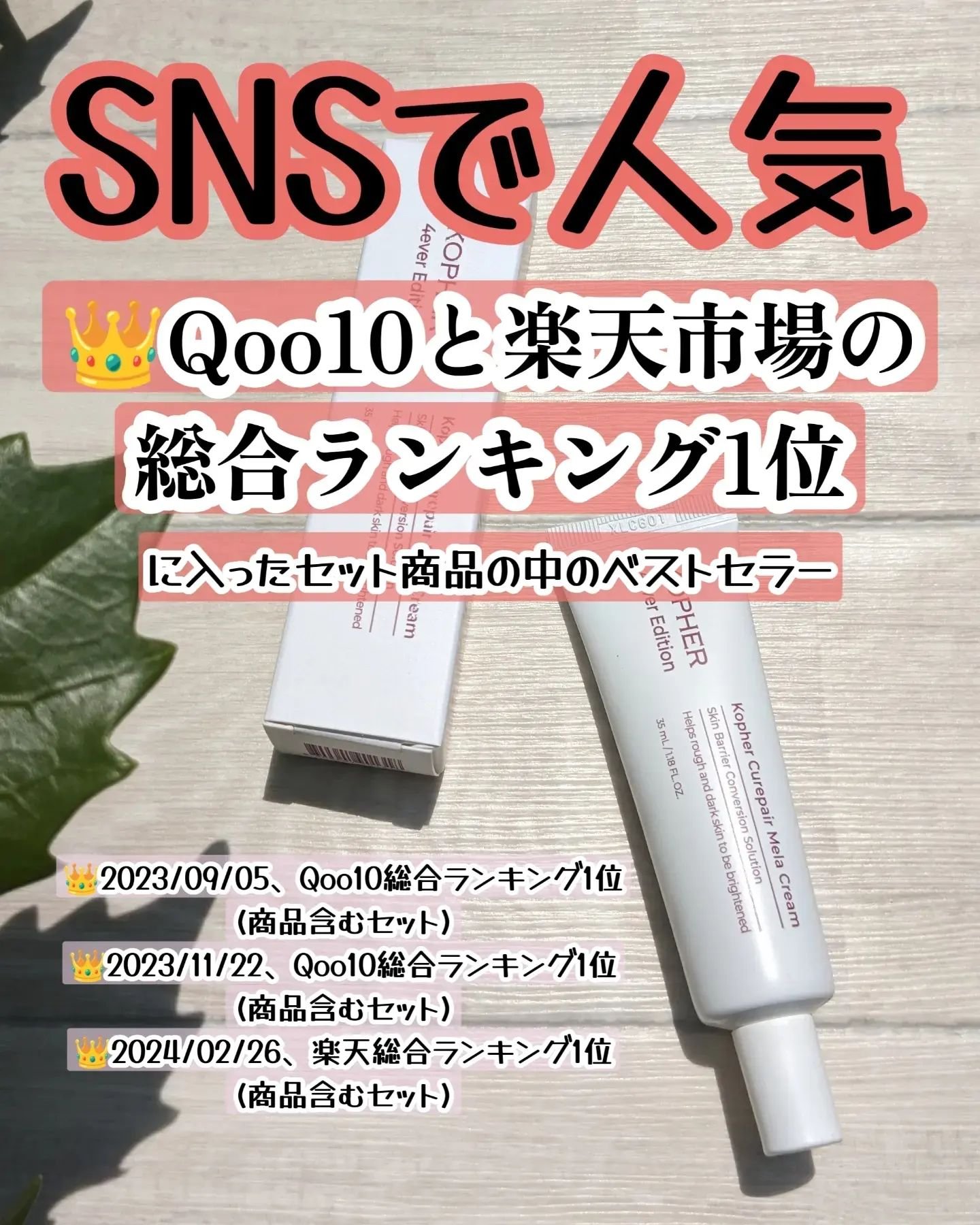 SNSで話題の成長因子が配合されているKopherのキュペリアメラクリーム❤️ Qoo10と楽天市場の総合ランキング1位に入ったセット商品の中のベストセラーなんだって💡 テクスチャーは重ためのこっくりクリーム!かと思いきや塗り広げるとみずみずしく変化してすぐにサラッとしてベタつかないよ✨ 今なら話題の「だいしゅん」とコラボ実施!楽天スーパーセールでお得なセットが購入できるよ❤️