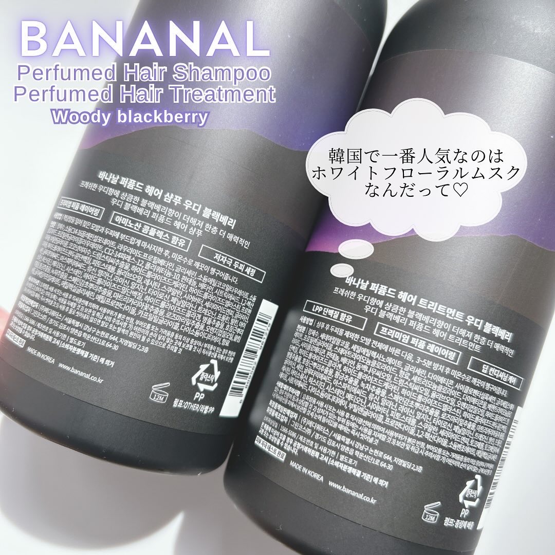 コスパ最強シャンプー🧴🧼 BANANAL 20年にもわたるこだわりの製造経験を持った専門家のインスピレーションを受けて作られた韓国のパフューム&ボディケアブランド💗 香りは5種類あって、今回は1番人気のホワイトフローラルムスクを使用しました👍🏻✨︎´- トリートメントもライン使いする事でより効果を感じられた気がします。ドライヤー後は指通りなめらかでさっぱりした仕上がり✊🏻 ̖́-