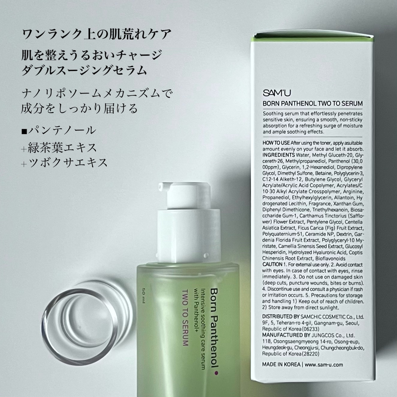 ダブルスージングセラム☘️ パンテノールから誕生した鎮静マスターボーンパンテノールラインで完璧な鎮静セラムです ✔︎やさしく肌を整える集中ケアセラムチャ実エキス、ツボクサエキス配合で肌に保湿効果を与え、弱くなった肌を健康でしっかりケア ✔︎ナノリポソームメカニズムで、有効成分の吸収を助け、より効果的な鎮静ケアをお届けにより角質層まで素早く届ける