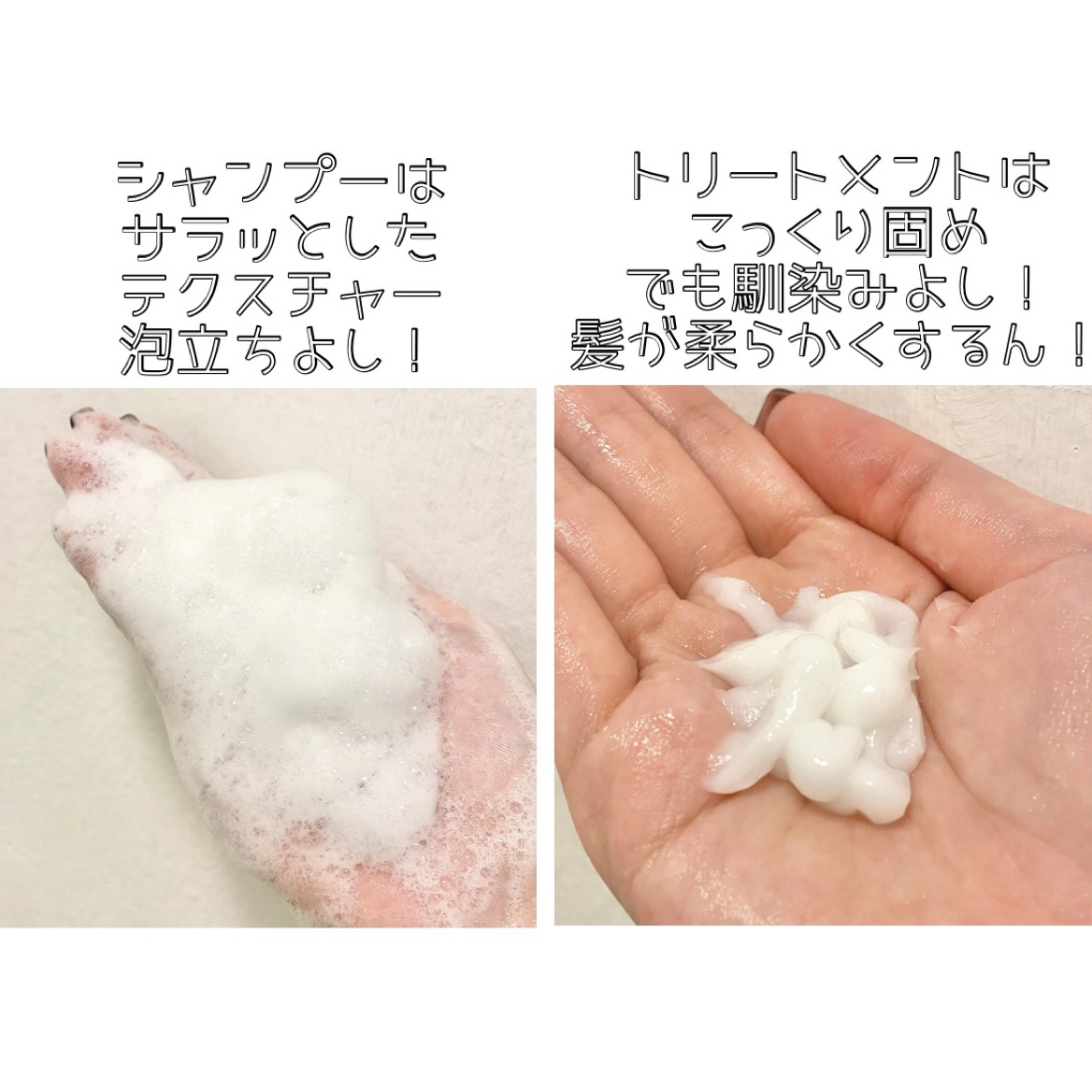 シルクとカシミヤケラチンで保湿しながらこだわり抜いた補修成分が毛先までダメージ補修を行い髪も頭皮も優しく洗い上げてくれるの!🫧🚿 洗い上がりから、とぅるんとした指通りでめっちゃいい!🧴🫧 なんと言っても私は香りがめっちゃ好きだった!🐑🫧 ホワイトフローラル&ペアーの上品な香りでまるで美容室にいるみたいなの!🚿✨