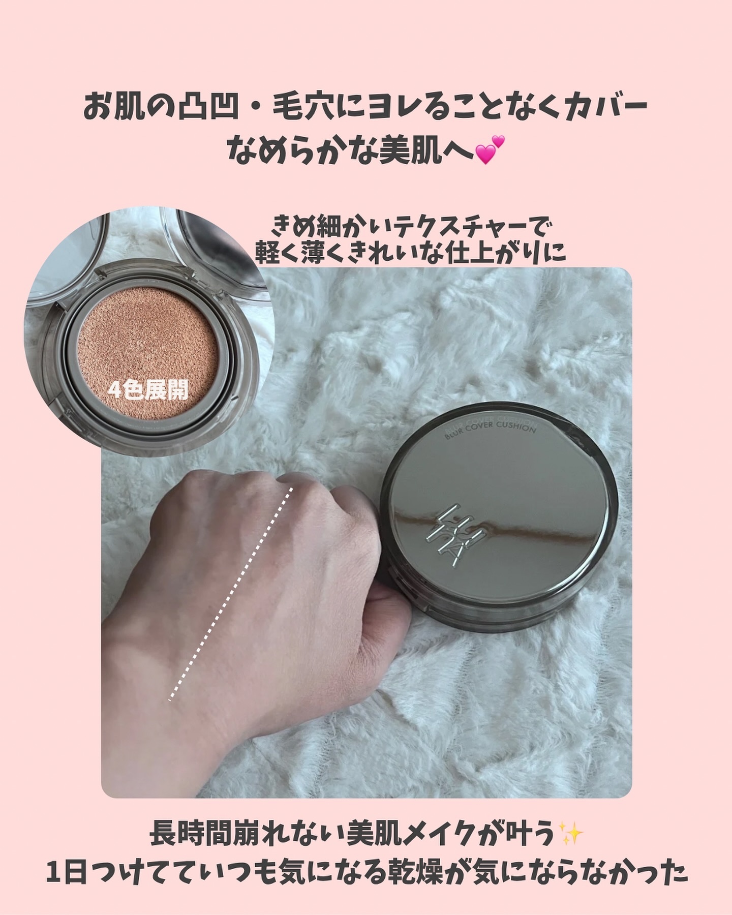 薄づきなのに肌の欠点を完璧カバー ブラー加工したようにキメ細かくなめらかで毛穴の目立たないつるり肌へと導くブラーカバークッションファンデ🩶 ヘラで押すと容量たっぷりでみずみずしい パケも鏡になってて化粧直しにも使えるよね🙆🏻♀️