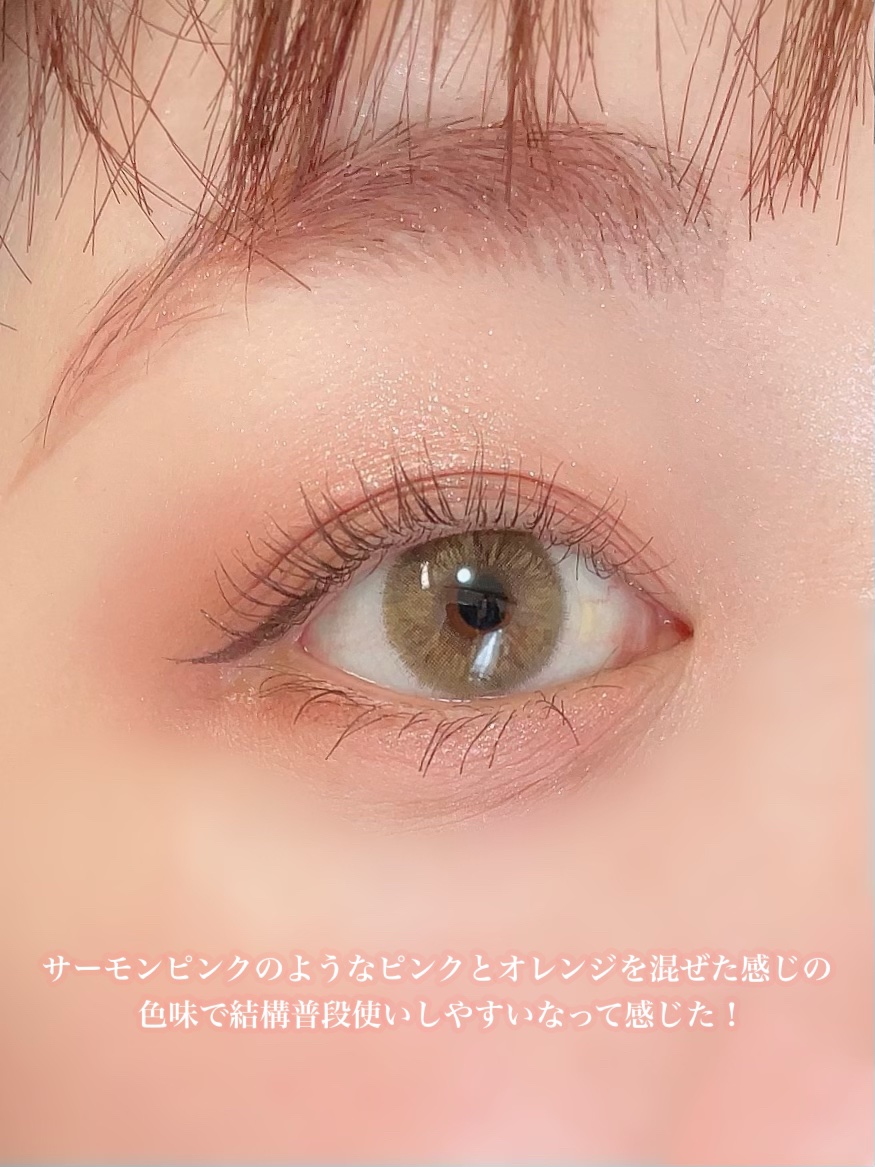 このアイシャドウは発色は薄めだけど その代わりにラメが凄くて!! なのでオレンジメイクしたいけど なかなか挑戦出来ない方とかにも◎ オレンジを単体で塗れば可愛い印象に ブラウンを加えれば大人っぽい印象に とっても可愛いアイシャドウなので 是非チェックしてみてください🍯💗