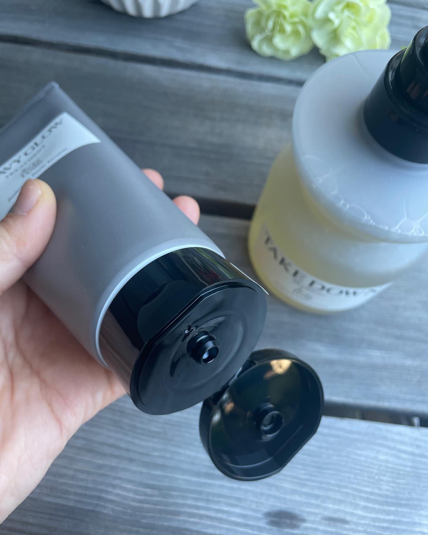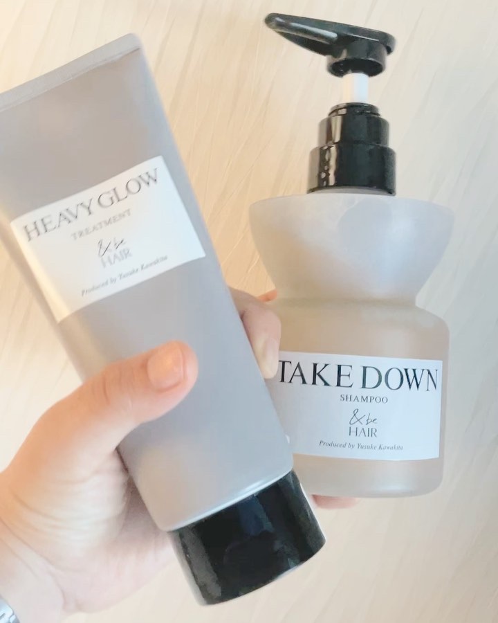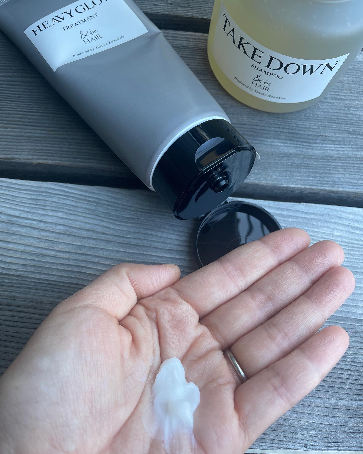 私は髪の毛が太い・頭皮と髪の毛が乾燥しやすいから見つけた組み合わせが テイクダウンシャンプーとヘビーグロウトリートメントになったよ🖤 目を引く洗練されたパッケージ、フラワーベースのようなくびれのあるシャンプーボトルは手に取った時に 滑りにくいのが嬉しい パートナーとシェアできそうな透明感のあるハーバルウッディの香りが好き