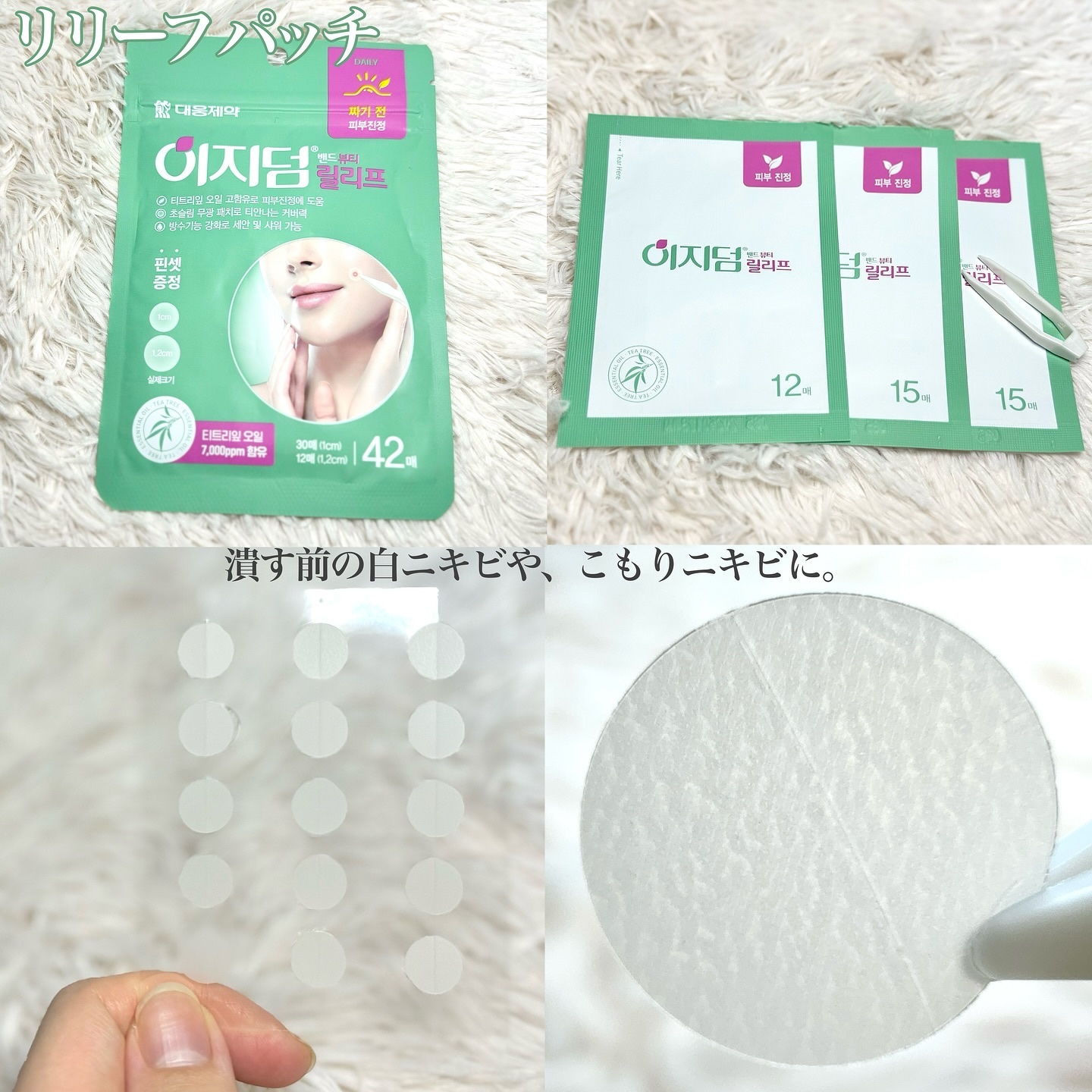 \このニキビパッチがあれば一日中ケアできちゃう✨ 韓国トップクラスの製薬会社大熊製薬(Daewoong)! 30年以上の研究が作り出した独自成分「DW-EGF*」を使用していたりと、美容にとってうれしいよね😆 肌荒れ対策に持っておきたいよね😘