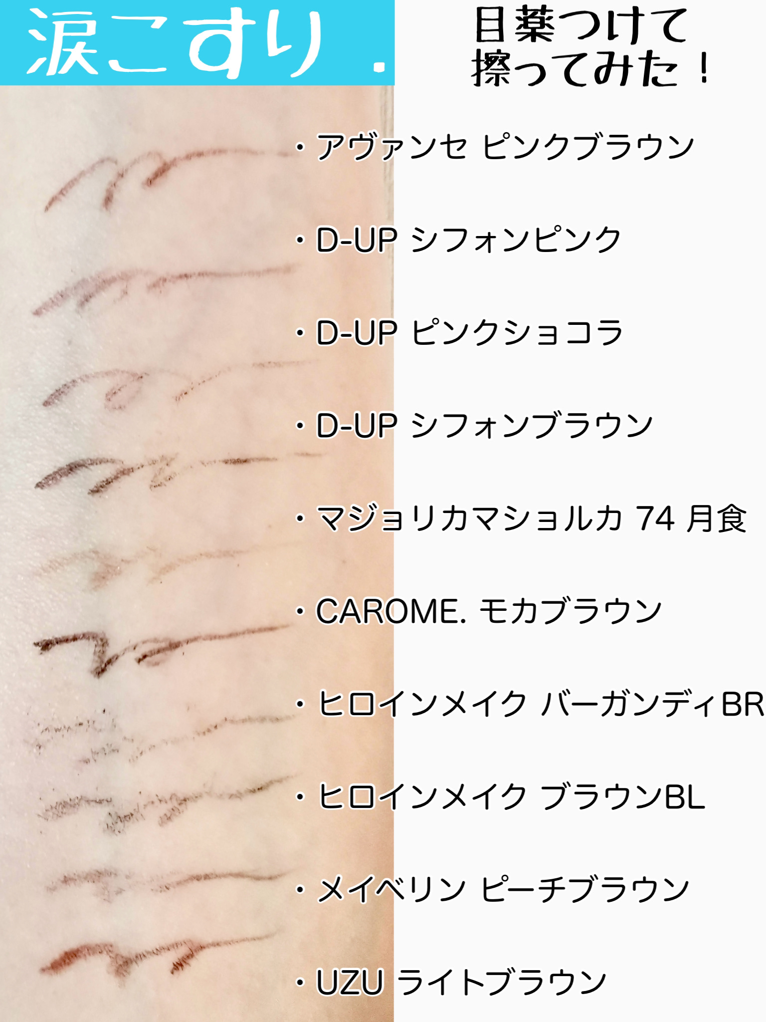 せっかく気合い入れて描いたアイラインが、昼に鏡見たら消えてるよ〜😭💦 って事ない?? カラーは🍫黒に近いダークブラウン~ピンクブラウン🎀です☝️ 第1関門▶︎ハンドクリームを塗り込んだ指でゴシゴシ❗️ 第2関門▶︎涙の成分の目薬を塗ってゴシゴシ‼️ この結果では消えちゃってるアイライナー、実は愛用してるw 色が目立ちすぎず、ペン先も描きやすいので😅