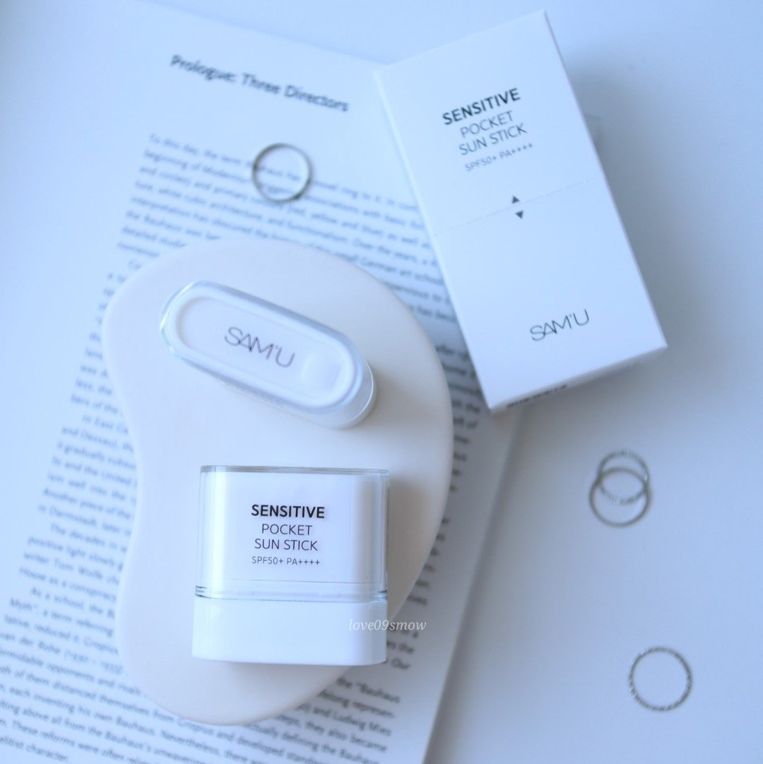 ✴︎SAM'USENSITIVEPOCKETSUNSTICKSPF50+PA++++箱から2個飛び出してくる!小さいけど強力なUVブロックが可能なサミュのサンスティックのご紹介です☀️箱を真ん中でパカっと割るとミニサイズのサンスティックが2個...