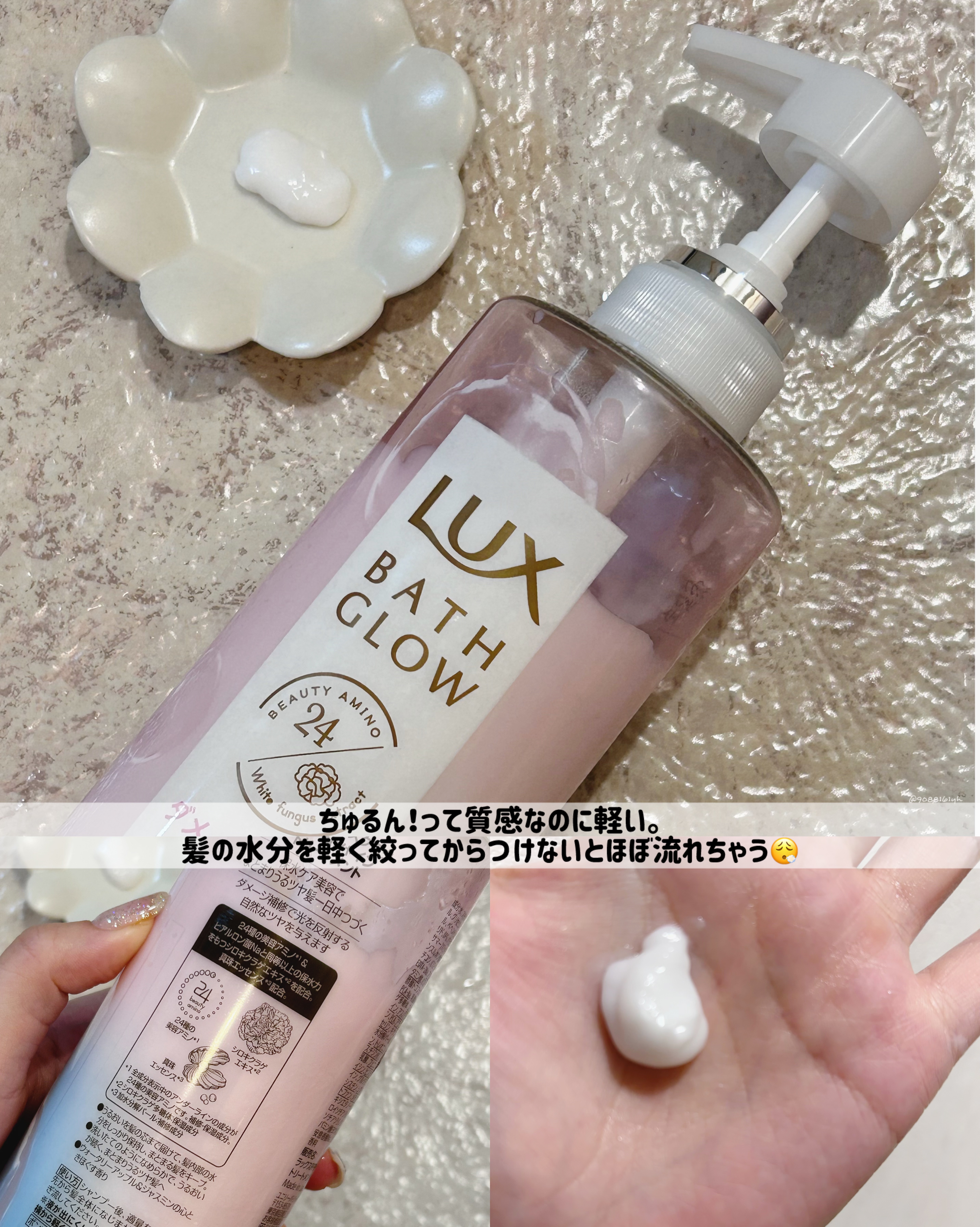 朝、髪がまとまらない原因の1つは髪の水分不足 保水ケア美容で、朝起きてから1日中素直にまとまるツヤ髪へ シャンプーは泡立ち良く洗いやすい印象 ヘアブースターはとろみのあるテクスチャでスッと馴染んでくれてました! 香りはホワイトフリージア&グリーン 清潔感のある優しい香りがお気に入り!