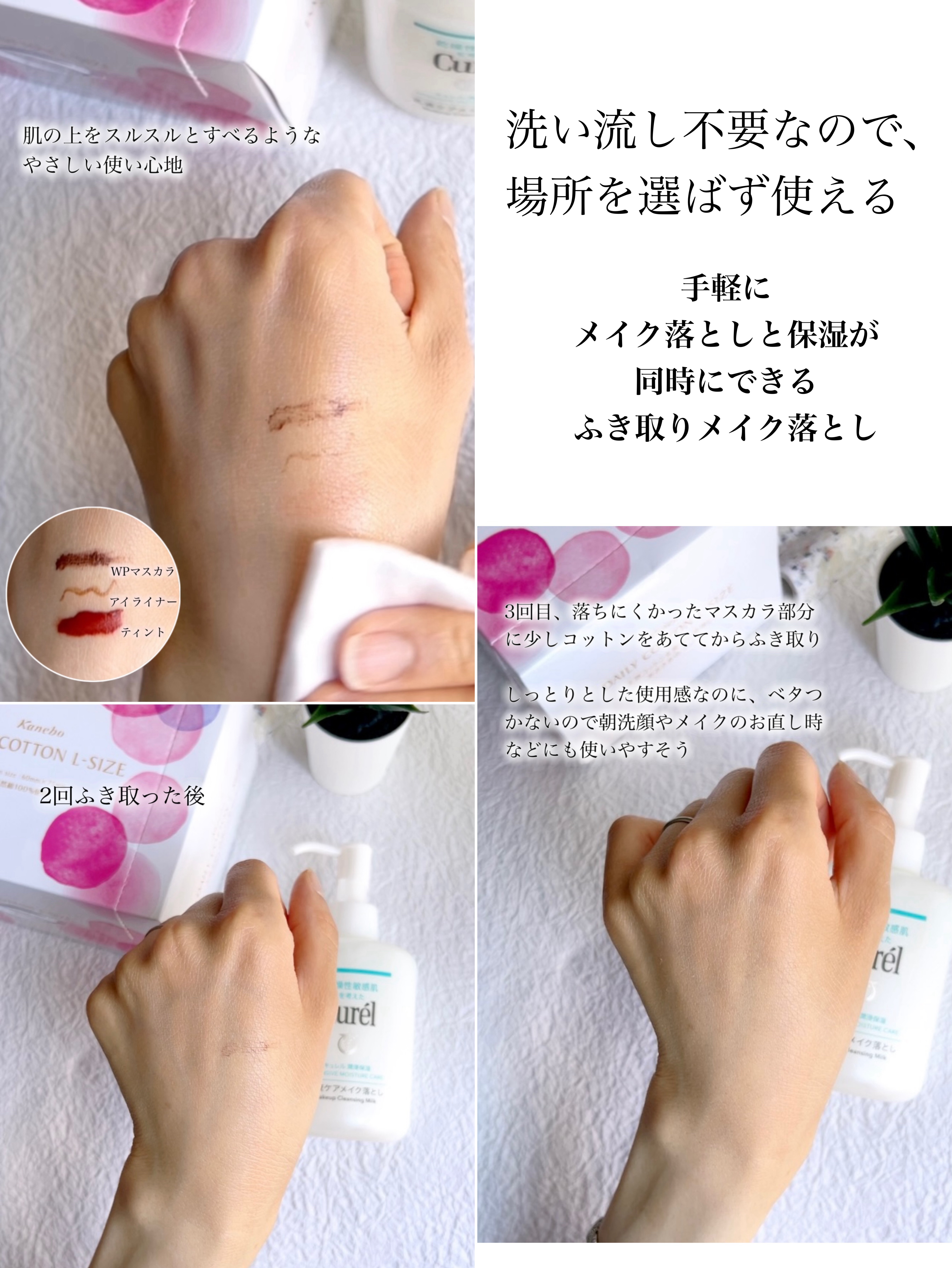 【使った商品】キュレル潤浸保湿乳液ケアメイク落とし【商品の特徴】①毛穴の約1/1,000サイズのセラミドケアオイルをIN。乳液が肌のすみずみまで行き渡り、メイクやちり・花粉等の汚れを落とします。②潤い成分配合。角層まで深く潤し、保湿まで完了。...