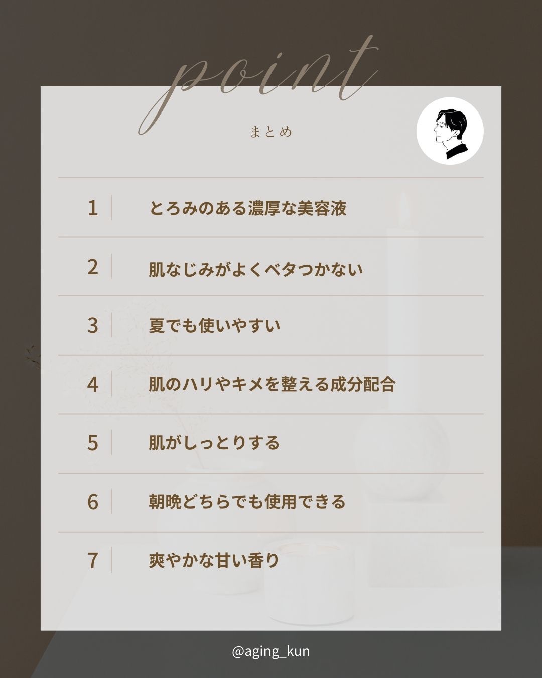 乳白色のサラサラした美容液で、ガラクトミセスとバクチオールが含まれています。 少量でもよく伸びてくれてつけた直後は保湿してしっとりしますが、馴染みがよくベタつかずに、すぐにサラサラとしてくれて使いやすかったです。 肌がふっくら元気になっている気がするので継続して使っていきたいです^^