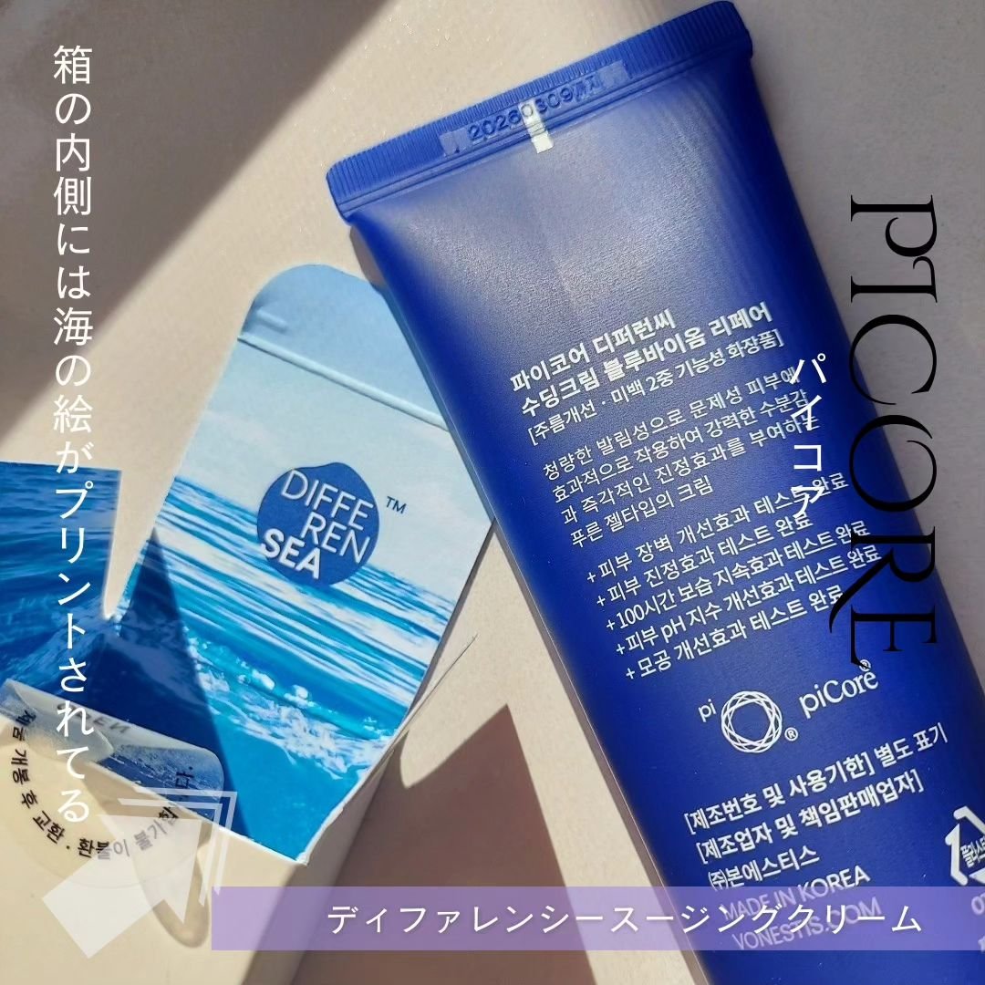 パイコア(piCore)ディファレンシースージングクリーム天然グアイアズレンという色素を使ったスージングクリームスリーピングマスクに使っていますなめらかなジェルお色がすごくきれい!軽めのさっぱりとした使い心地追い保湿でしっかり冬もケアしたいな...
