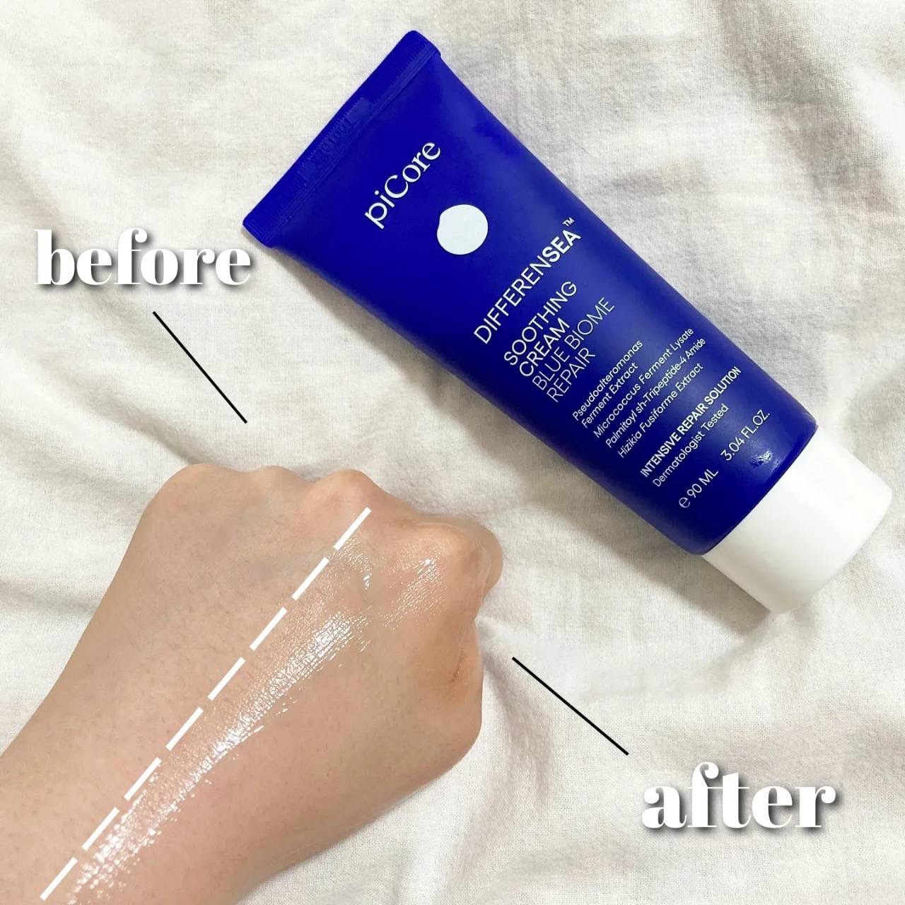 パイコア(piCore)ディファレンシースージングクリーム天然グアイアズレンという色素を使ったスージングクリームスリーピングマスクに使っていますなめらかなジェルお色がすごくきれい!軽めのさっぱりとした使い心地追い保湿でしっかり冬もケアしたいな...