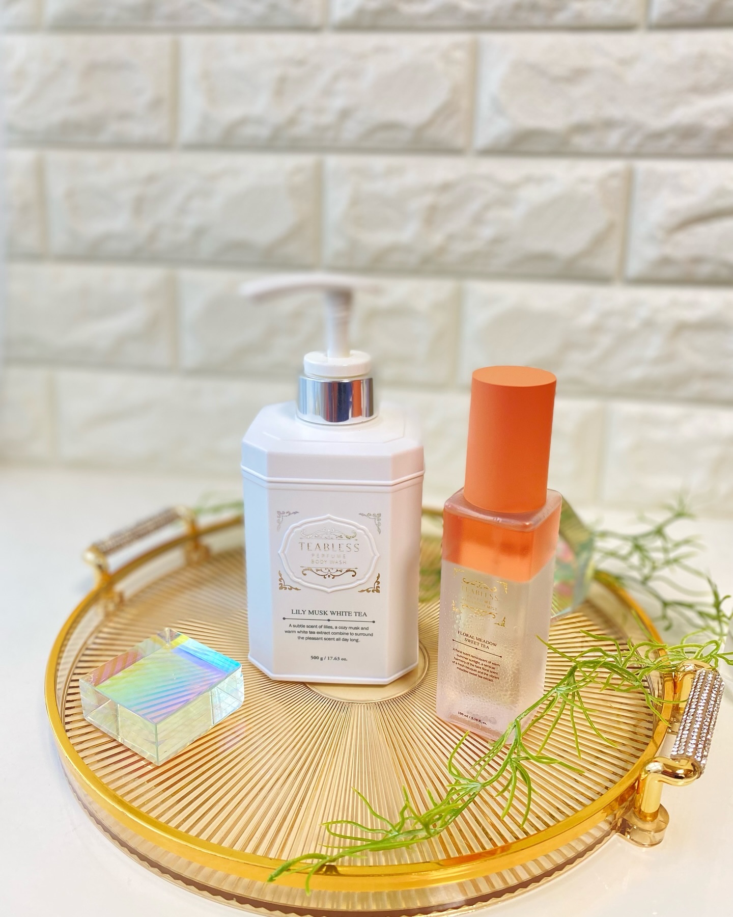 teabless様より"リリームスクホワイトティーティーパフュームボディローション"(写真1枚目左)"パフュームヘア&ボディミストフローラル"(写真1枚目右)まずはボディローション🤍この香り本間に大好き➿(՞˶ᵒ̴̶̷᷄꒳ᵒ̴̶̷᷅˶՞)❕香...