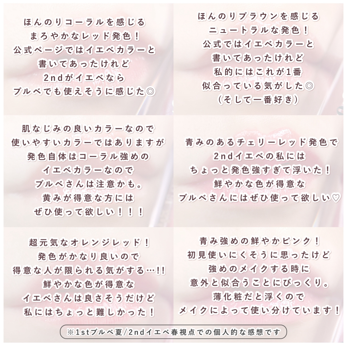| リップティントランキング第2位 | 使い切りサイズだし持ち運びにも🙆♀️ 発色も良くて、これからの季節更に使えそうです♥ | 詳細を見る | ||