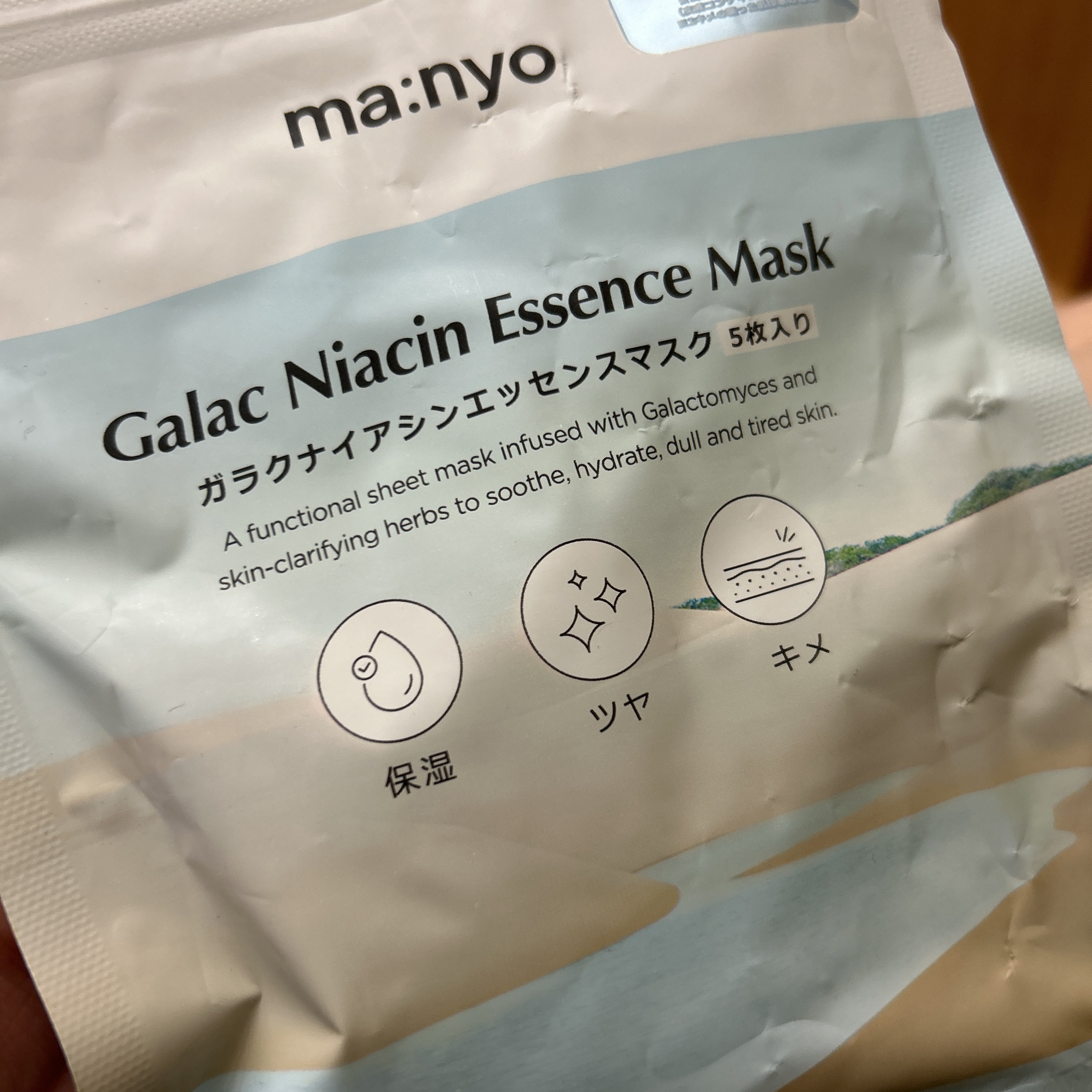 manyoガラクナイアシンエッセンスマスク美容液がたっぷりヒタヒタに染み込まれていてプルプルな感じの触り心地のマスク😊肌にもしっかりと密着してくれます👍! 100%竹から作られたシートみたいです🙄ヒアルロン酸の保湿でしっとりもち肌に✨液がたっ...