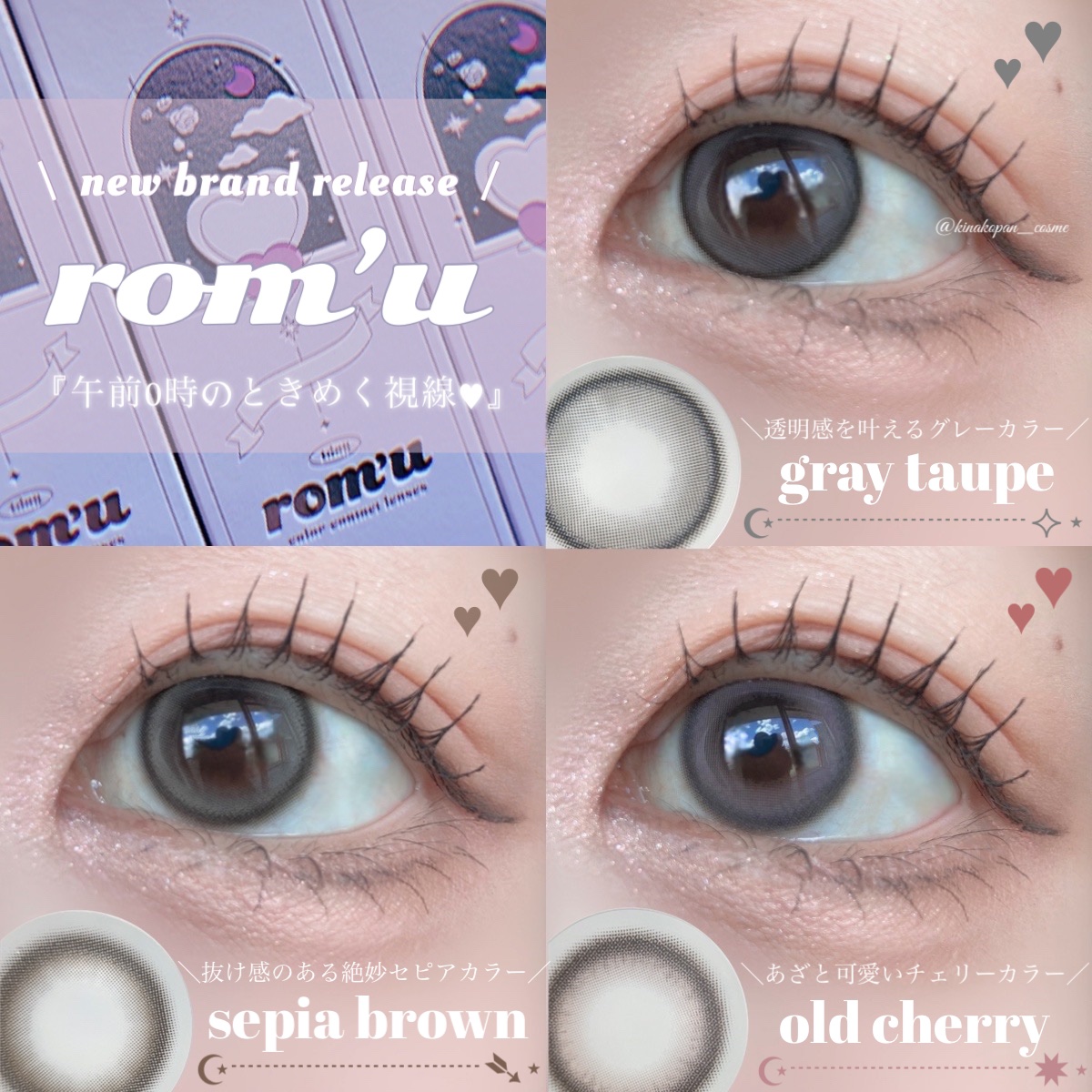 しっかり盛れる大きめのレンズ✨✨ 今回の投稿では欠品度数が続出した人気シリーズのrom’u episode01,02,03全カラー計9色をご紹介します🫧 太フチ×パープルカラーで甘さと存在感のある瞳へ💜 潤みピンク×ネイビーフチで自分の瞳の良さをいかす儚げレンズ🦋