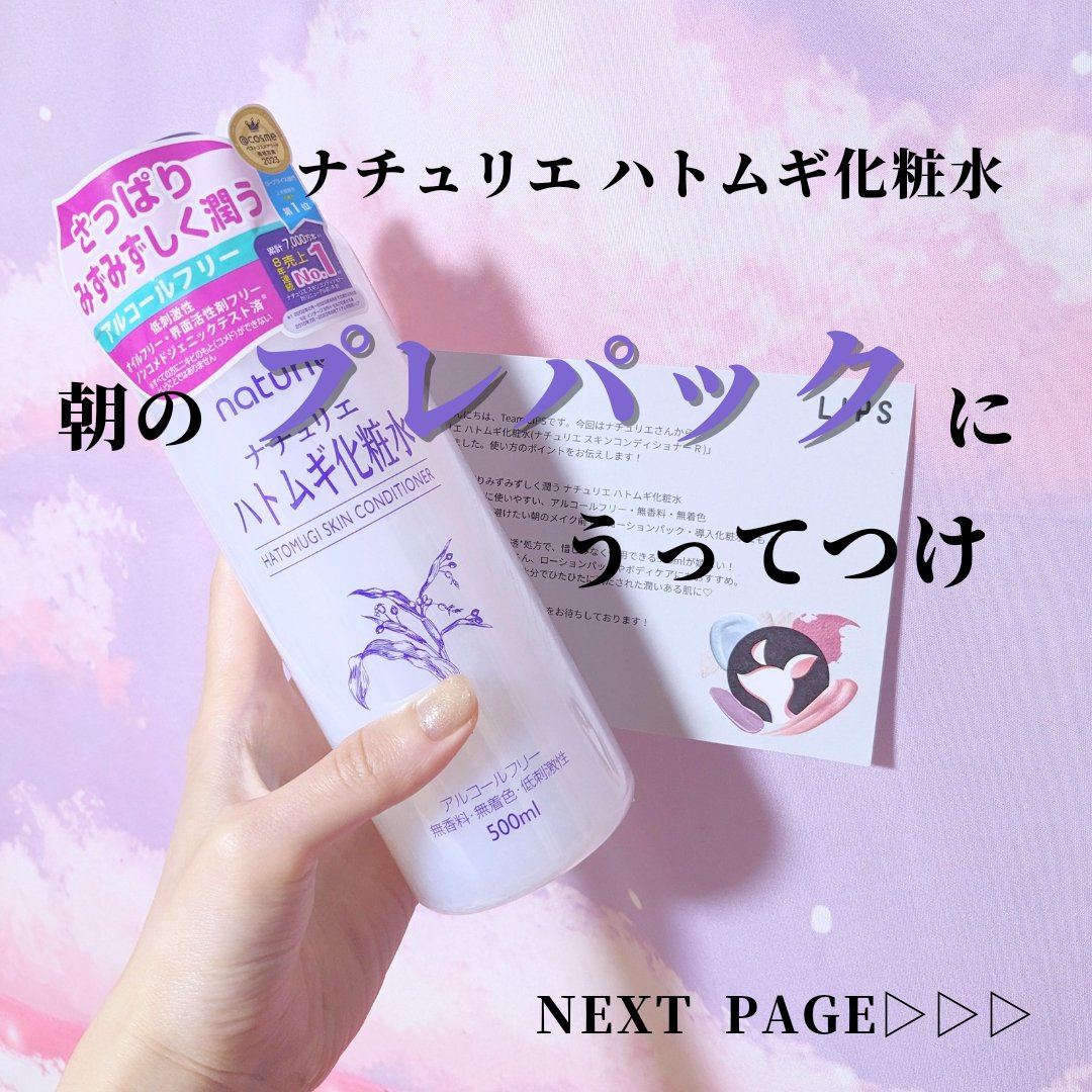 naturie(ナチュリエ)ハトムギ化粧水ハトムギ化粧水をまたプレゼントでいただきました!😆『さっぱりみずみずしく潤う』・しっかり水分補給→みずみずしく浸透力に優れた処方なので、 重ねるほどぐんぐん肌になじみ、 角層を水分で満たす・さっぱりし...