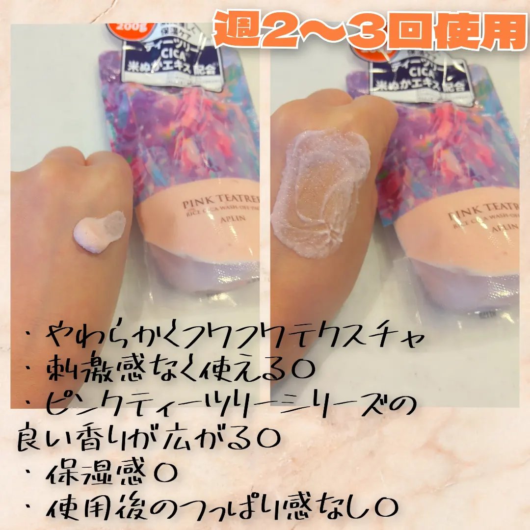 今日のパックは大好きアプリンの💕APLINピンクティーツリーライスシカウォッシュオフパックザラつく古い角質をケアしてパッと明るくくすみOFFしてくれる。クリームタイプでピンクティーツリーシリーズ使ってる人は分かると思うけどあのいい香りをまとえ...