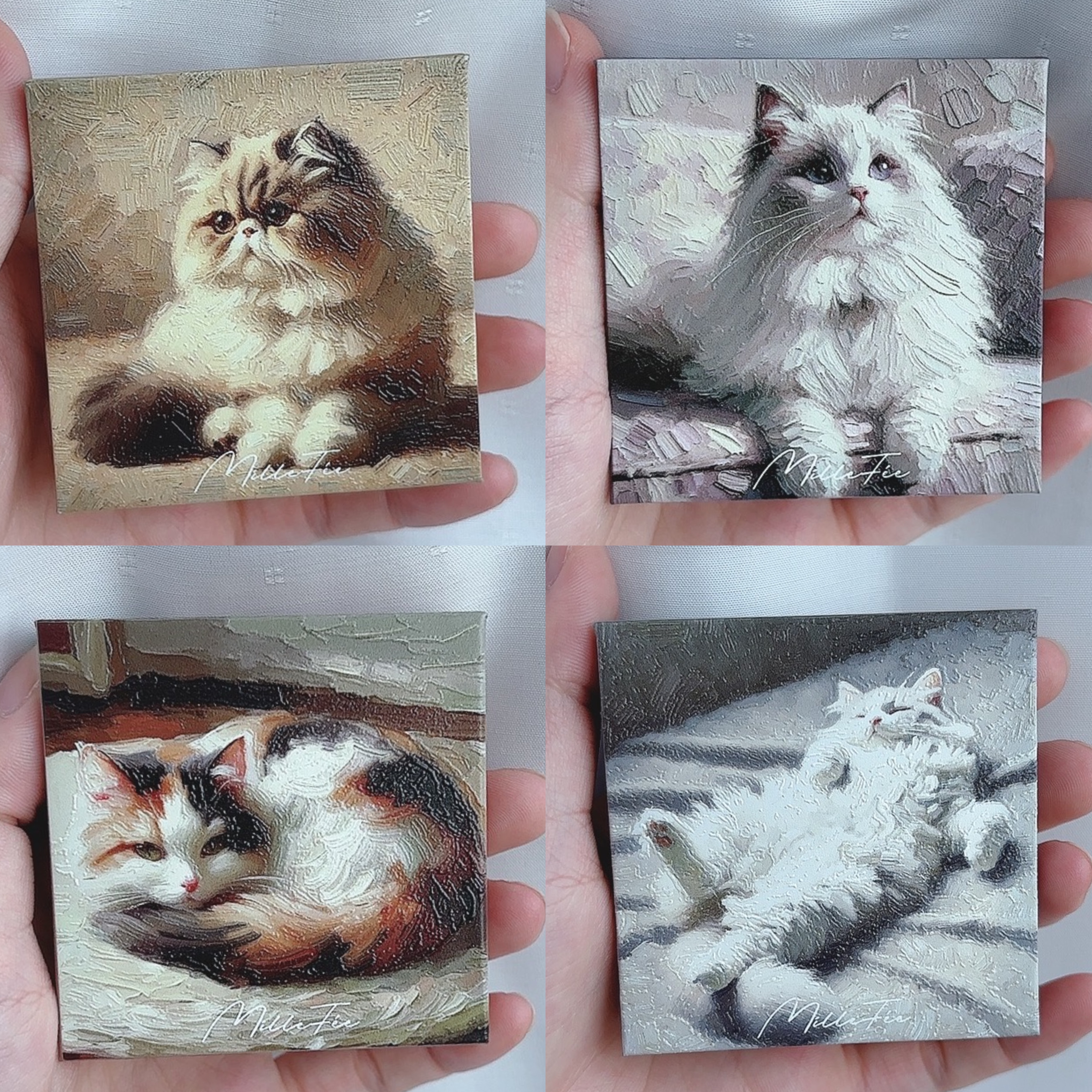 - ・MilleFée猫シリーズの第二弾 SNS上で大きな話題となった肉球アイシャドウこと「ミャオパウズアイシャドウパレット」に続く、猫シリーズのコスメの第二弾となります。 ・写実的な猫の描写 今にも飛び出してきそうなほど、リアルで写実的な猫の描写がポイントです。SNSでも人気のポーズ「へそ天」やクリームパンのようなおててなど、猫好きにはたまらない仕上がり。 自由気ままに、個性あふれる猫をイメージしたパッケージが特徴です。 ・細かく柔らかい粉質 MilleFéeのアイシャドウといえば「細かく柔らかな粉質」が特徴で、その使用感が好きというファンの方も多いです。本製品も例外ではなく、どの色も粉質が非常に柔らかく心地の良い使用感となっています。またアイシャドウのカラーはそれぞれの猫の特徴や性格のイメージを落とし込んだカラー展開となっております。 2024年5月27日より公式ECサイト、5月29日よりAmazon.co.jp、Qoo10、楽天市場店で販売を開始 店頭では2024年6月上旬より全国のロフトおよびロフトネットストア、@cosme STOREにて販売を順次開始後、7月上旬より全国のバラエティストアにて順次販売を開始する予定です。(いずれも一部店舗を除く)