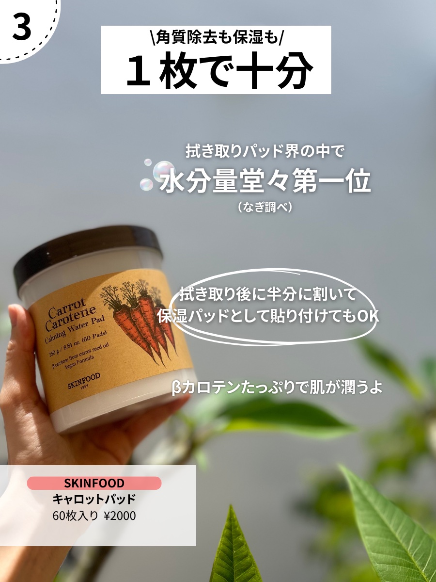 SKINFOOD キャロットカロテン カーミングウォーターパッド | 3,080円 |