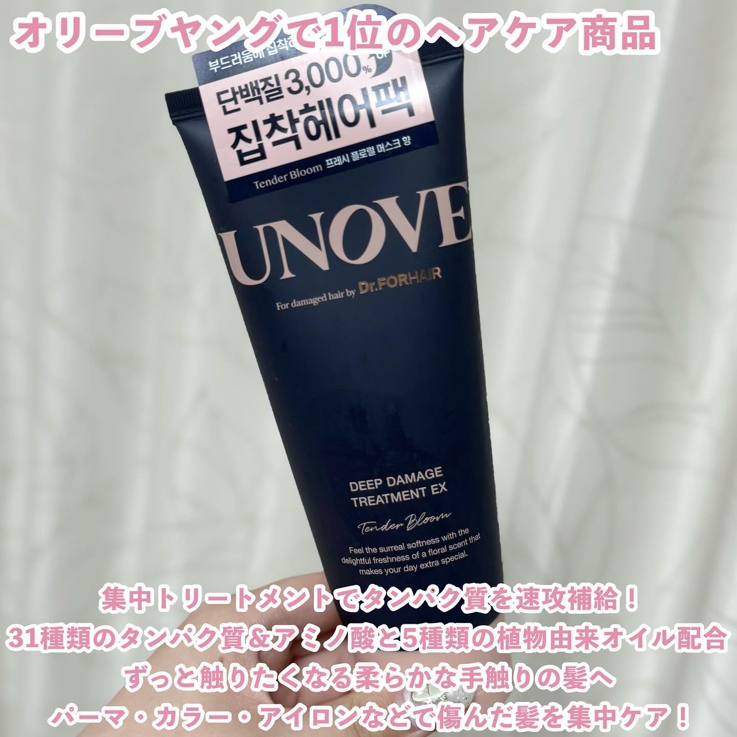 UNOVEさまからいただきました@unove.jp様よりディープダメージトリートメントEXをお試しさせていただきました☺️✨ありがとうございます🍀🍀こちら、オリーブヤングヘアケア部門3年連続1位の大人気ヘアトリートメント✨✨タンパク質を贅沢に...