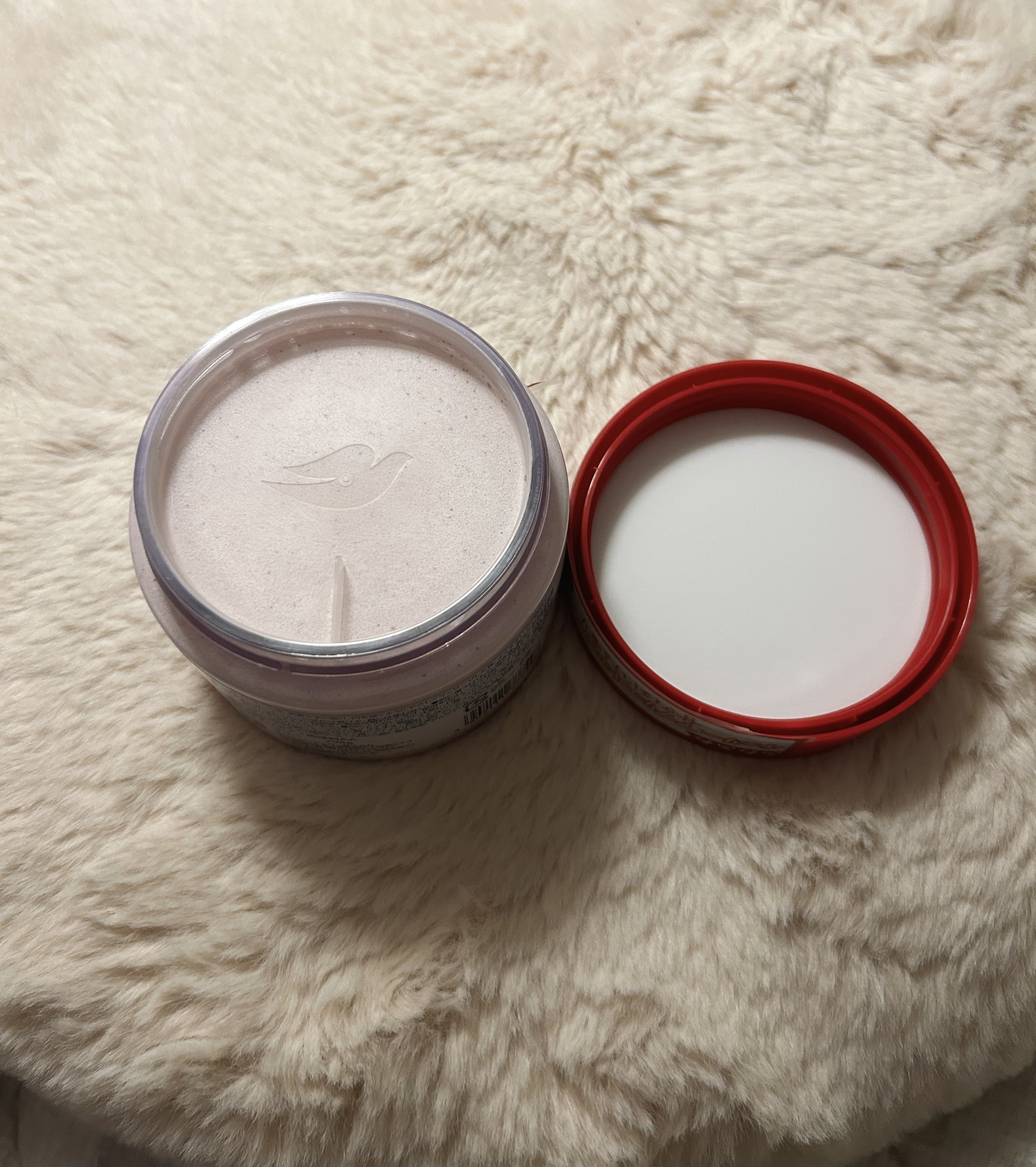 クリーミーなテクスチャーで、肌の上になめらかに伸びます。 古い角質をやさしく落としてくれるのて、肌が潤ってツヤ肌になれます✨ 甘酸っぱい可愛らしい匂い、使い心地の良さ 少し大きいので場所を取ります。