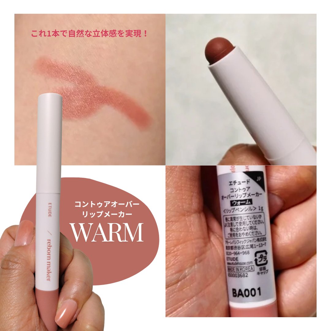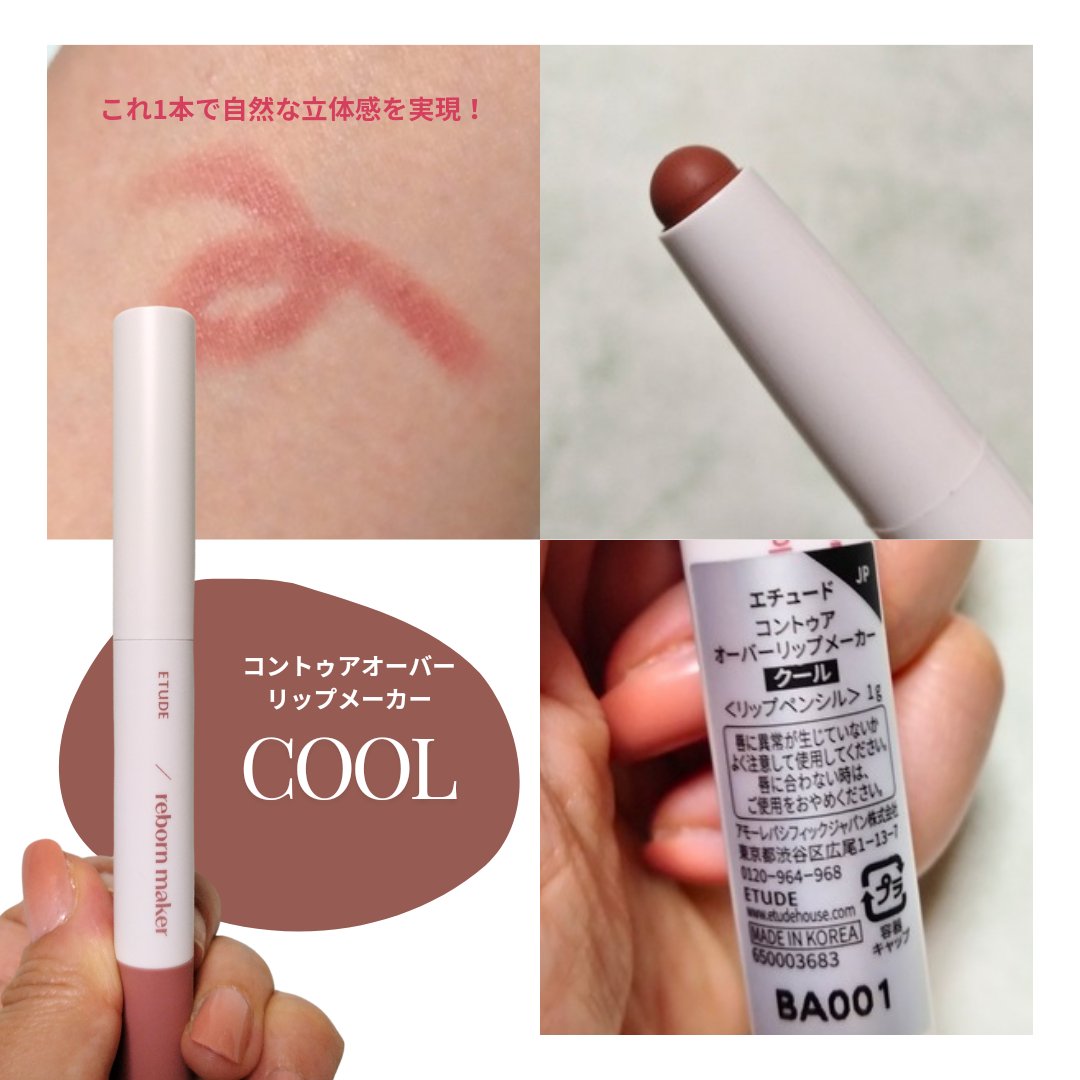 簡単ボリュームアップ&人中短縮!!!*メイクアップ効果によるもの✦✦ETUDEコントゥアオーバーリップメーカークール/ウォーム¥1,540(税込)✦✦太さが理想的で使いやすくてリピ買いしちゃいました🤍🎀𓈒𓏸︎︎︎︎シェーディングへのこだわりを...