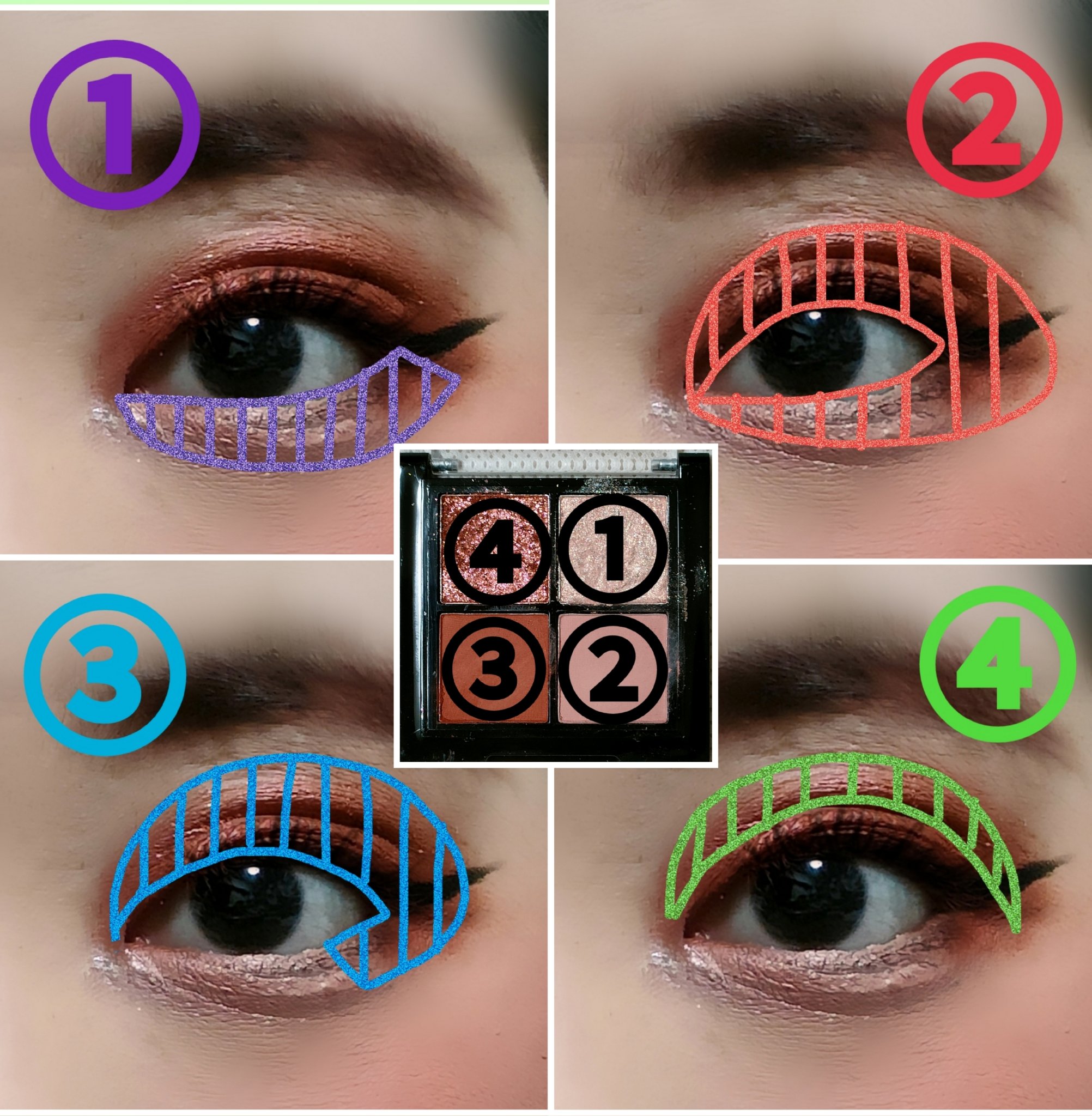 アイシャドウパレットは、URGLAM UR GLAMBLOOMING EYE COLOR PALETTE 02を、使用しました。 マスカラは、MAYBELLINE NEW YORK コロッサルボリュームエクスプレスを、まつ毛全体にまんべんなく塗ります。 リップは、wet 'n' wild MegaLast Lip Colorを、唇全体にまんべんなく塗ります。